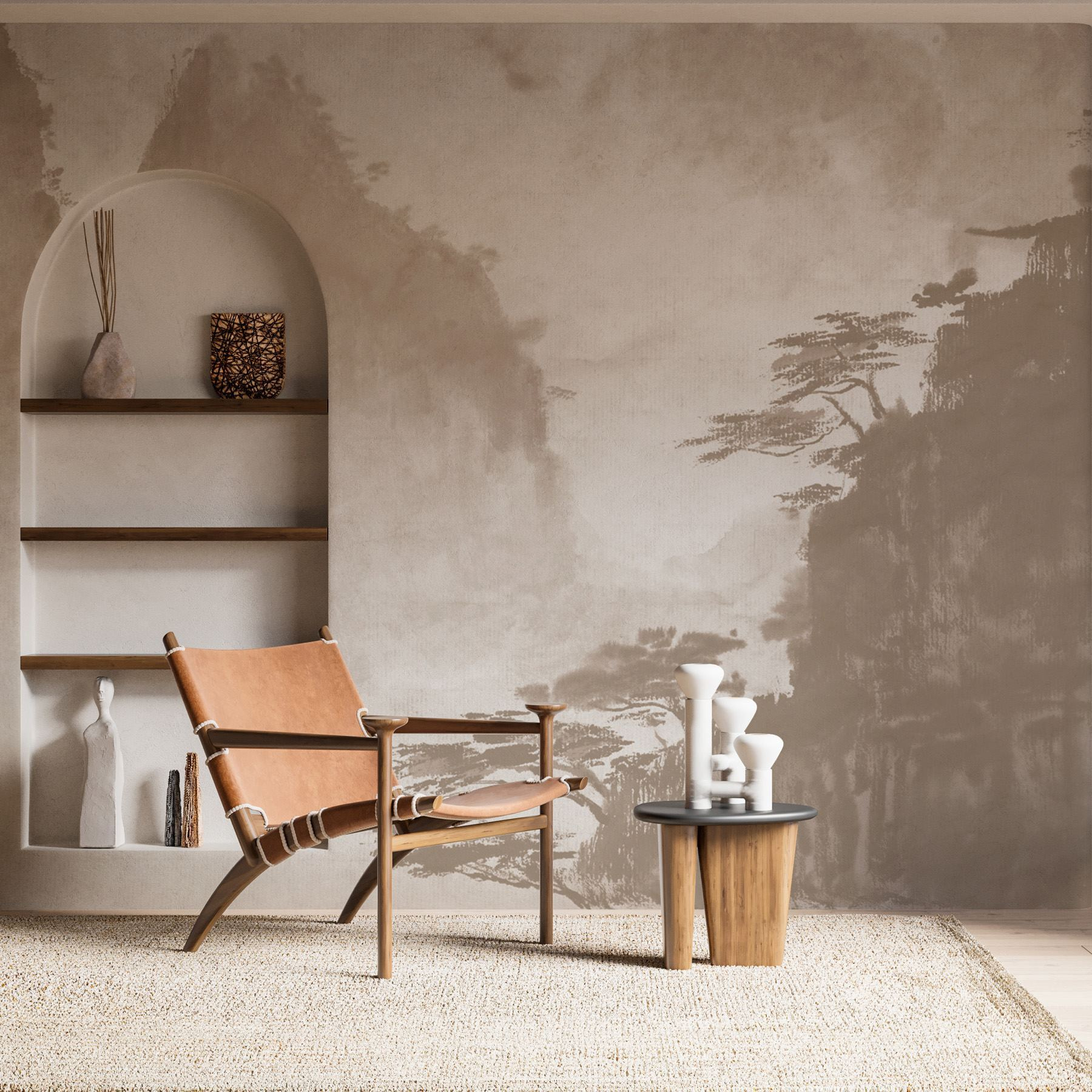 Φέρτε μια πινελιά γαλήνης στο χώρο σας με αυτή τη μαγευτική τοιχογραφία που χορεύει ανάμεσα στην κομψότητα των δέντρων και το μεγαλείο των βουνών. Είναι σαν να τυλίγετε τους τοίχους σας με μια απαλή αγκαλιά από την ίδια τη φύση. Φανταστείτε να πίνετε τσάι, ατενίζοντας αυτές τις απαλές πινελιές ακουαρέλας, ενώ το μυαλό σας ταξιδεύει σε ειρηνικές πεζοπορίες και ψιθυριστούς ανέμους. Ιδανικό για ένα άνετο σαλόνι ή ένα ηρεμιστικό υπνοδωμάτιο, προσθέτει βάθος και μια βουτιά ηρεμίας. Ποιος δεν θα ήθελε να νιώθει ότι ζει μέσα σε ένα γαλήνιο τοπίο, σωστά; Ετοιμαστείτε να δημιουργήσετε τη δική σας μικρή απόδραση!
