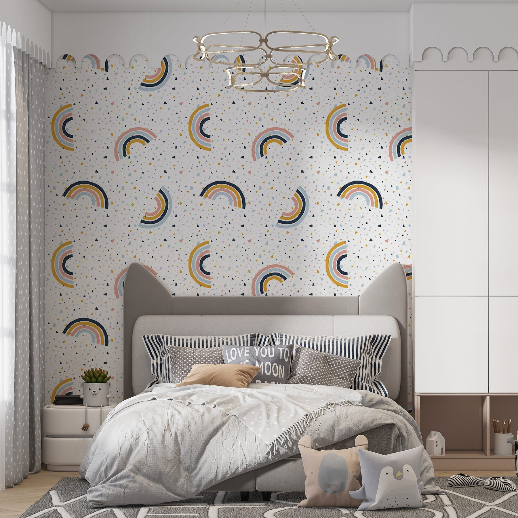 Μεταμορφώστε οποιονδήποτε χώρο με αυτή την απολαυστική τοιχογραφία τοίχου με παιχνιδιάρικα ουράνια τόξα και μια πινελιά χρώματος. Είναι σαν μια χαρούμενη αγκαλιά για τους τοίχους σας! Τα ζωηρά μοτίβα προσθέτουν μια διασκεδαστική, ιδιόρρυθμη ατμόσφαιρα που είναι ιδανική για παιδικά δωμάτια, χώρους παιχνιδιού ή ακόμη και για μια ζεστή γωνιά στο καταφύγιο των μεγάλων. Φανταστείτε το γέλιο ενός παιδιού να αναπηδά στους τοίχους ή μια ζεστή γωνιά ανάγνωσης να φωτίζεται με έμπνευση. Κάθε ουράνιο τόξο φέρνει λίγη χαρά, καθιστώντας δύσκολο να μην χαμογελάτε κάθε φορά που περνάτε από εκεί. Αυτή η τοιχογραφία δεν είναι απλώς διακόσμηση – είναι ένας τρόπος να φωτίσετε την καθημερινότητά σας.