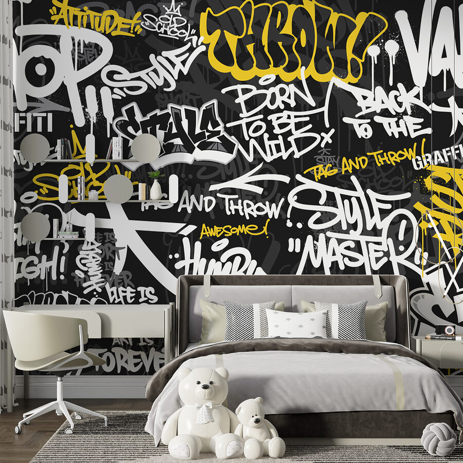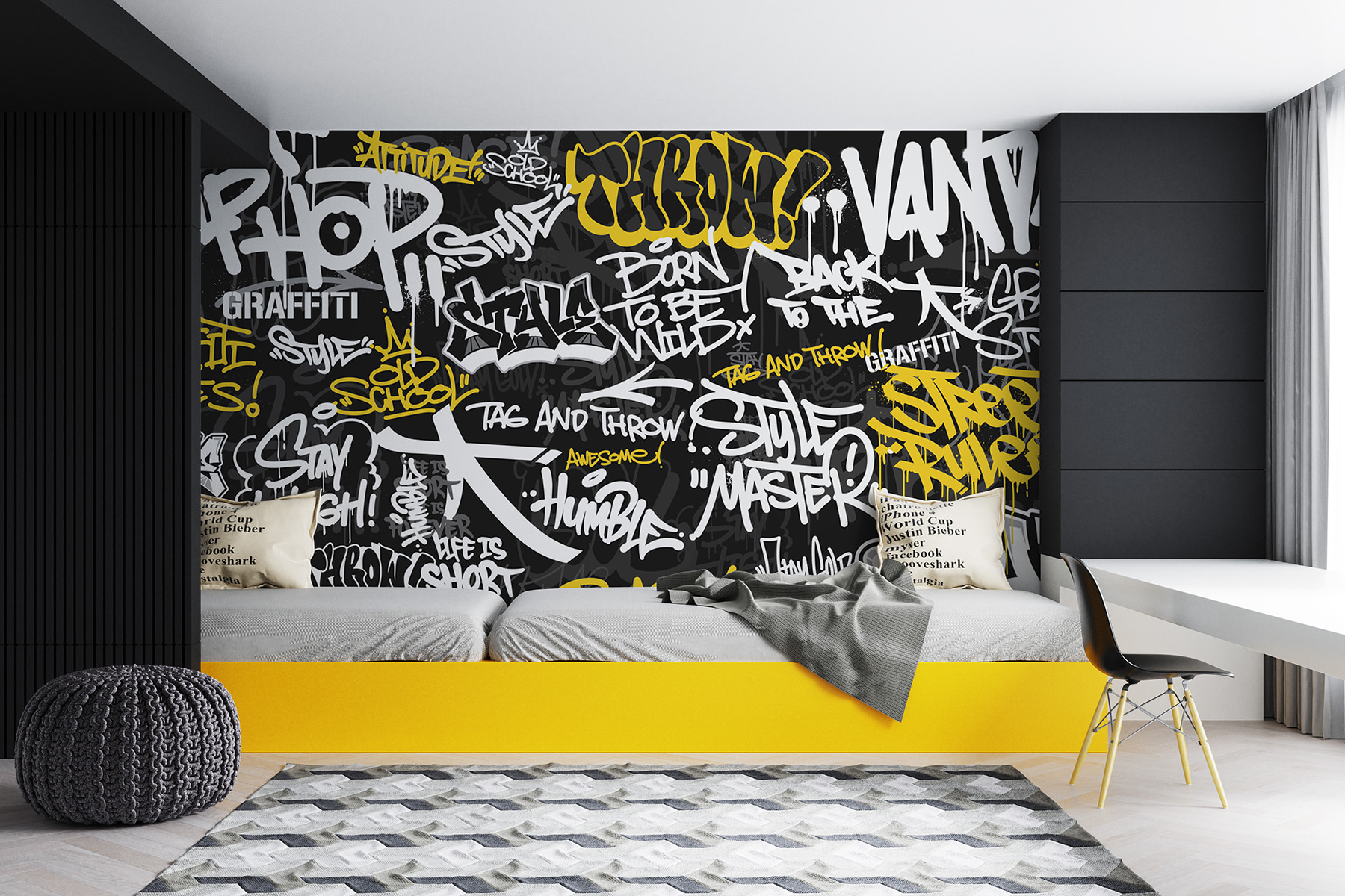 Αυτή η τοιχογραφία, “Κίτρινο γκράφιτι σε μαύρο φόντο”, είναι ένα απόλυτο vibe. Ιδανική για να προσθέσετε μια πινελιά από ακραία, αστική δροσιά σε κάθε χώρο. Φανταστείτε το δωμάτιο του εφήβου σας να μοιάζει ξαφνικά με σοκάκι του κέντρου με τον καλύτερο δυνατό τρόπο – γεμάτο νεανική ενέργεια και επαναστατικό πνεύμα. Είναι σαν να φέρνεις την τέχνη του δρόμου μέσα στο σπίτι χωρίς τις αναθυμιάσεις του σπρέι! Επιπλέον, ο συνδυασμός κίτρινου και μαύρου είναι πραγματικά εντυπωσιακός και προσθέτει αυτό το απροσδόκητο ποπ που μπορεί να ξυπνήσει ένα δωμάτιο. Παραδόξως εκλεπτυσμένη, ενώ παραμένει εντελώς φρέσκια, αυτή η τοιχογραφία είναι ιδανική για όλους τους νέους ή απλά νέους στην καρδιά, που θέλουν οι τοίχοι τους να μιλούν δυνατά.