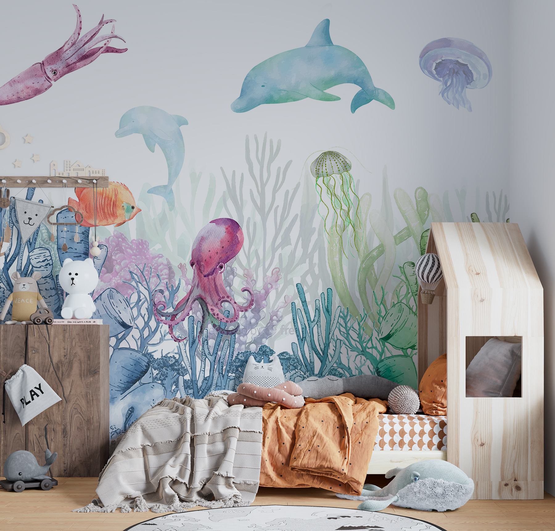 Φανταστείτε το μωρό σας να χαχανίζει με τα φιλικά ψάρια ή τον γιο σας να ονειρεύεται ωκεάνιες αποστολές. Τα απαλά, παστέλ χρώματα αναμειγνύονται τόσο καλά, σχεδόν σαν να τα ζωγράφισε η ίδια η ομίχλη του ωκεανού. Είναι σαν να κάνετε μίνι διακοπές χωρίς να βγείτε από το σπίτι! Επιπλέον, είναι ένα φανταστικό αντικείμενο συζήτησης- οι καλεσμένοι θα λένε: “Ουάου, πού το βρήκες αυτό;”. Ακόμα και το παιδί που κρύβετε μέσα σας μπορεί να χορέψει ένα χαρούμενο χορό.