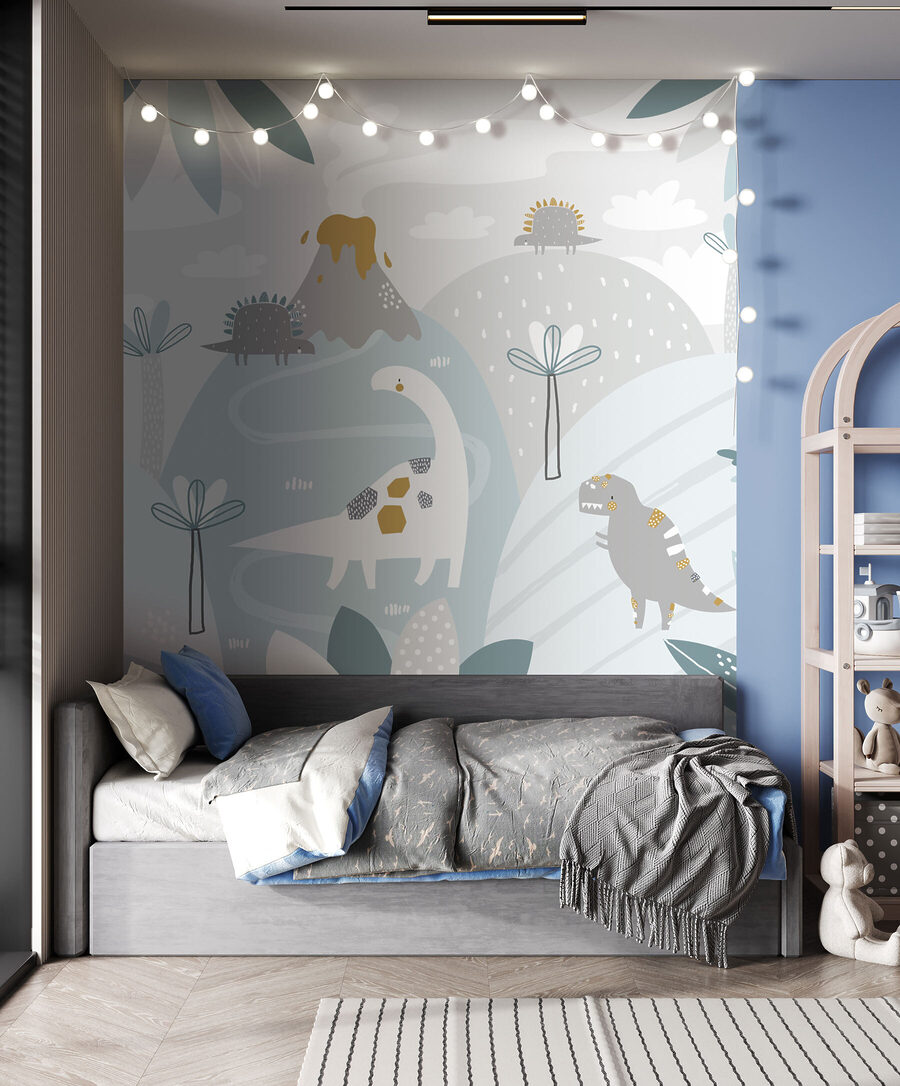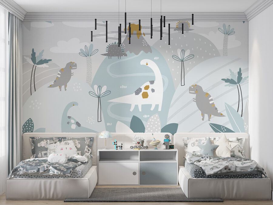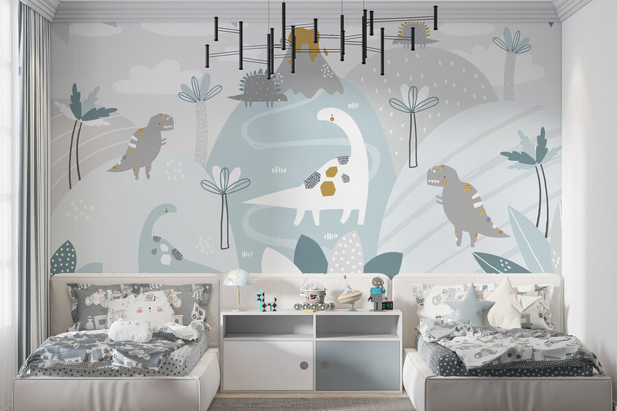 Σκεφτήκατε ποτέ να ταξιδέψετε πίσω στην εποχή των δεινοσαύρων, αλλά, ξέρετε, παραμένοντας στη ζεστή γωνιά σας; Αυτή η τοιχογραφία σας καλύπτει! Με το καταπραϋντικό μπλε και λευκό φόντο του, το οποίο είναι διάσπαρτο με ευφάνταστες λευκές κουκίδες, μοιάζει με ένα ονειρικό τοπίο όπου οι διασκεδαστικοί δεινόσαυροι κυκλοφορούν ελεύθερα. Φανταστείτε το παιδάκι σας να ξυπνάει κάθε πρωί και να ακούει έναν φιλικό βραχιόσαυρο να λέει “γεια σας” – εγγυημένα στιγμιαία χαμόγελα!