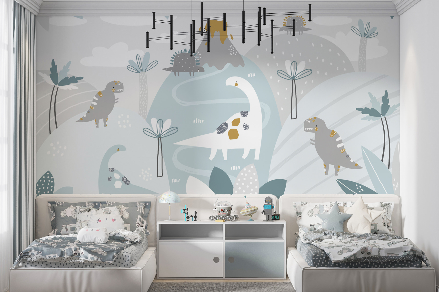 Μπορείτε να το φανταστείτε; Κάθε μέρα είναι ένα μίνι ταξίδι στο Ιουρασικό, ακριβώς από το υπνοδωμάτιό τους. Δεν είναι απλώς διακόσμηση, είναι ένα έργο τέχνης που πετάει σπίθες και μετατρέπει τους τοίχους σε άγρια θαύματα.