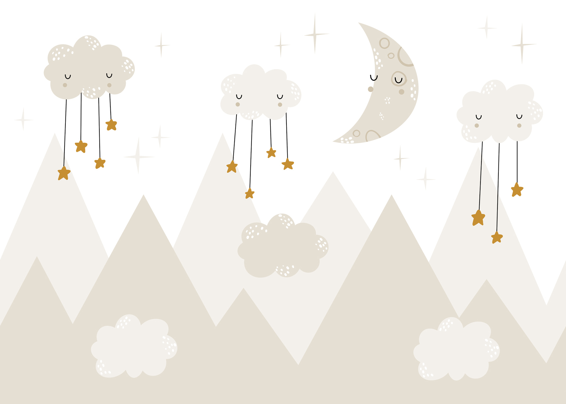 Φανταστείτε αυτό: μια ονειρική τοιχογραφία νυχτερινού ουρανού με ένα νυσταγμένο φεγγάρι και άνετα σύννεφα που κρέμονται από αστέρια, που λάμπουν απαλά πάνω από τις κορυφές των βουνών. Είναι σαν να μπαίνετε σε μια παράξενη ιστορία για ύπνο! Ιδανική για το παιδικό δωμάτιο ή το δωμάτιο των παιδιών, αυτή η τοιχογραφία συνδυάζει τη φαντασία και την άνεση – πυροδοτώντας τη δημιουργικότητα του μικρού παιδιού και δημιουργώντας παράλληλα μια χαλαρωτική ατμόσφαιρα. Σκεφτείτε όλα αυτά τα γλυκά όνειρα και τα χαχανητά κατά την ώρα του ύπνου. Επιπλέον, ποιος δεν θα ήθελε να αποκοιμηθεί κάτω από μια τόσο ευχάριστη και ηρεμιστική σκηνή; Είναι κάτι περισσότερο από απλή διακόσμηση – είναι μια μικροσκοπική περιπέτεια, ακριβώς στον τοίχο.