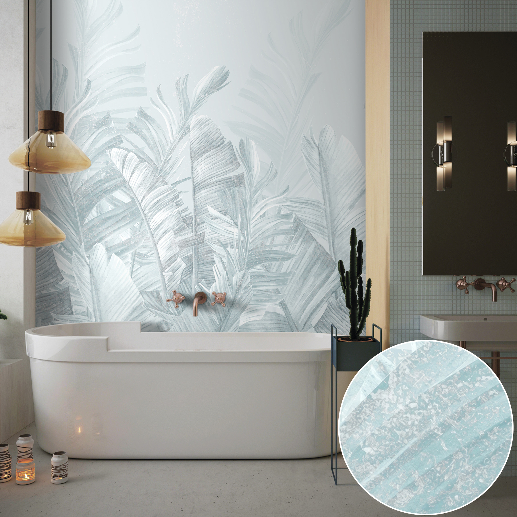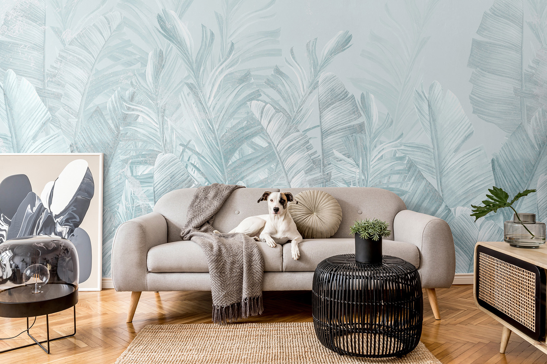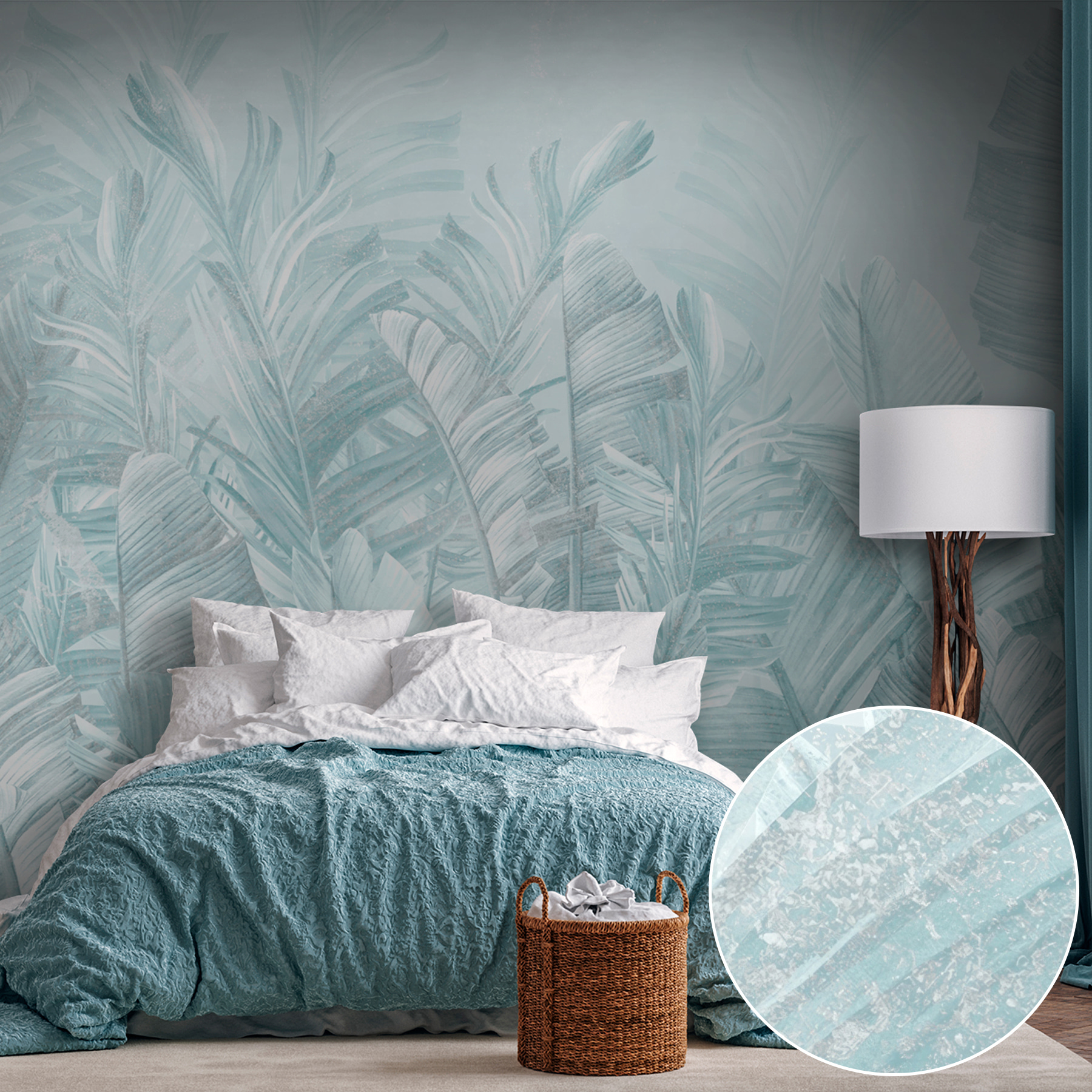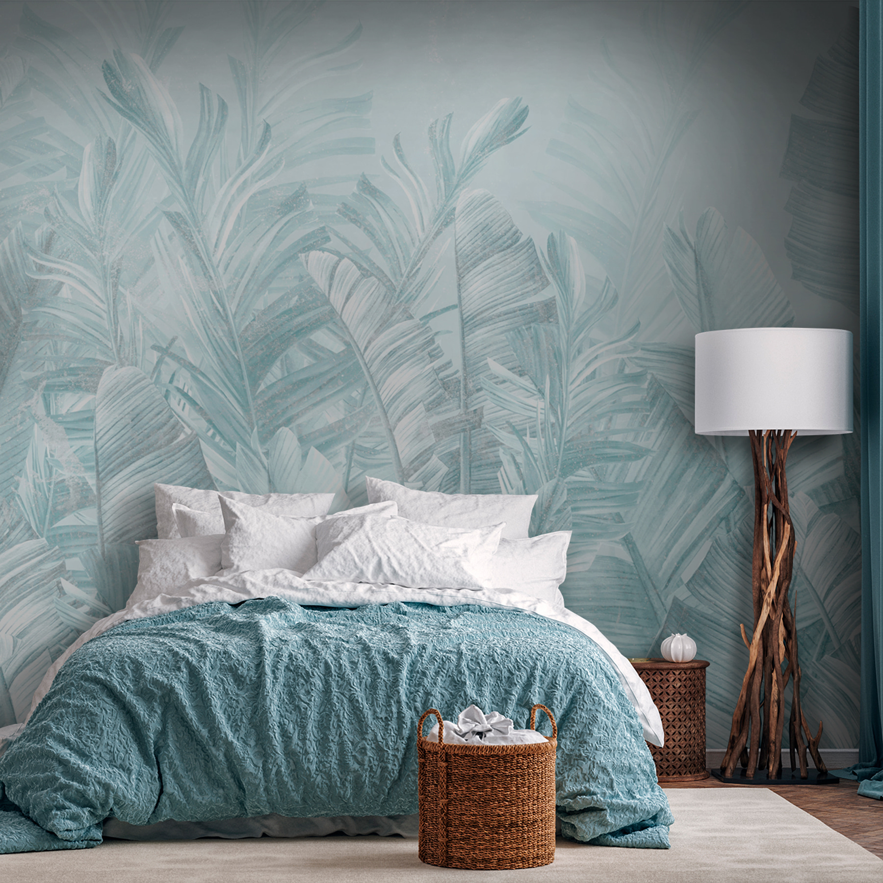 Μεταμορφώστε το χώρο σας με αυτή την υπέροχη τοιχογραφία τροπικών φύλλων σε απαλές αποχρώσεις. Φανταστείτε να μπαίνετε σε ένα δωμάτιο που μοιάζει με μια αέρινη απόδραση σε έναν καταπράσινο παράδεισο – χωρίς τα τσιμπήματα των κουνουπιών. Αυτή η τοιχογραφία φέρνει μια γαλήνια, ήρεμη ατμόσφαιρα, καθιστώντας την ιδανική για να χαλαρώσετε μετά από μια κουραστική μέρα. Φανταστείτε άνετες βραδιές ταινιών ή αεράτα brunch, ενώ περιβάλλεται από απαλό πράσινο και λεπτές υφές που σχεδόν ψιθυρίζουν: “Χαλαρώστε, είστε σε χρόνο νησιού τώρα”. Είναι το είδος του σκηνικού που κάνει κάθε στιγμή να αισθάνεται ξεχωριστή, και ας είμαστε ειλικρινείς, ποιος δεν χρειάζεται λίγο περισσότερο από αυτό; Γιατί λοιπόν να μην προσθέσετε μια πινελιά τροπικής ηρεμίας στους τοίχους σας;