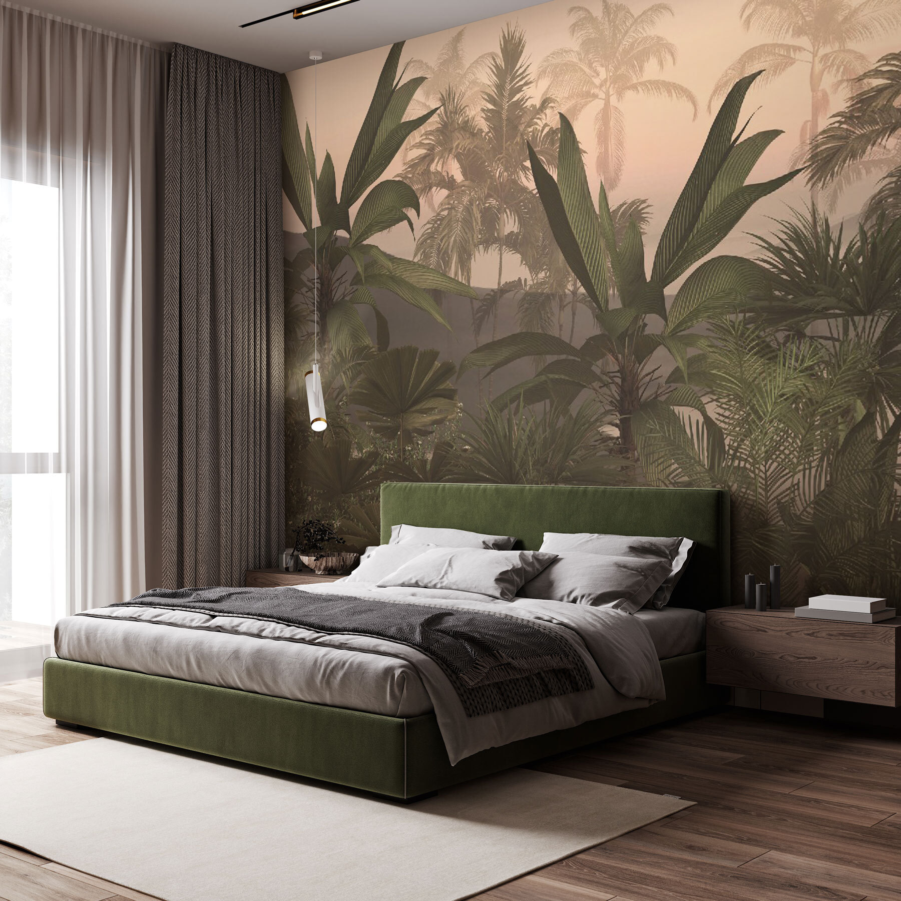 Το απαλό, θολό φόντο σε συνδυασμό με τα ζωηρά πράσινα φύλλα κάνει κάθε χώρο να αισθάνεται ζωντανός και ανανεωμένος. Είτε πρόκειται για το σαλόνι, το υπνοδωμάτιο ή ακόμα και το γραφείο σας, θα σας κάνει να νιώθετε ότι βρίσκεστε σε μια συνεχή απόδραση. Και το καλύτερο μέρος; Δεν υπάρχουν έντομα! Μόνο ατελείωτη ηρεμία και ένα άγγιγμα εξωτικής γοητείας ακριβώς στους τοίχους σας.
