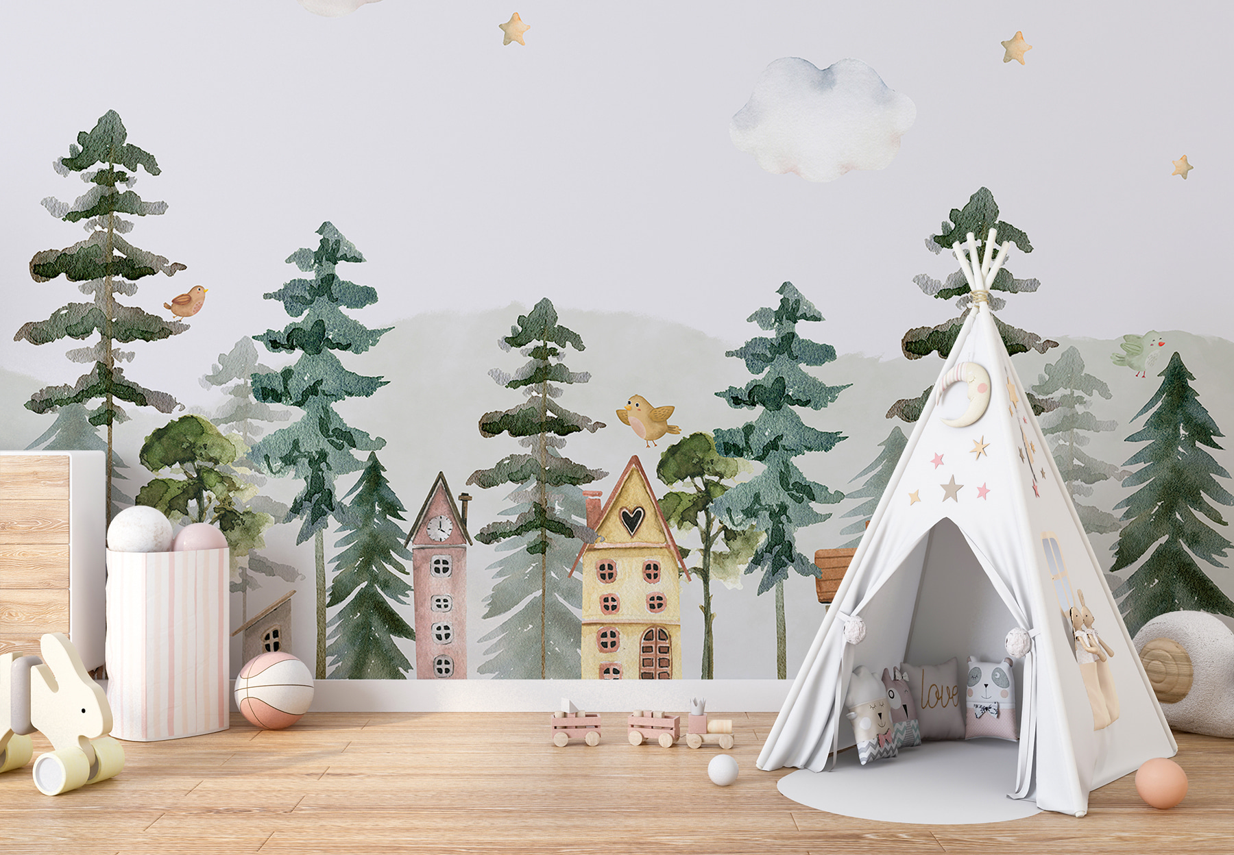 Ω, η γοητεία της ακουαρέλας και η ζεστασιά μιας ζεστής σκηνής σπιτιού! Αυτό το “Ταπετσαρίες Watercolor of a House” μεταμορφώνει αμέσως κάθε χώρο σε ένα ιδιόρρυθμο καταφύγιο. Φανταστείτε να μπαίνετε σε ένα δωμάτιο όπου μικροσκοπικά ζωγραφισμένα σπιτάκια ξεπροβάλλουν ανάμεσα σε καταπράσινα δέντρα, με απαλά σύννεφα και αστέρια να αιωρούνται από πάνω – είναι ένας μικρός κόσμος παραμυθιού στον τοίχο σας! Ιδανικό για παιδικά δωμάτια ή παιδικά δωμάτια, προσθέτει μια καταπραϋντική, ονειρική ατμόσφαιρα. Οι περίτεχνες λεπτομέρειες, όπως τα παράθυρα σε σχήμα καρδιάς και τα πουλιά που κάθονται στα δέντρα, προσκαλούν σε ατελείωτο παιχνίδι με τη φαντασία. Ακόμα και σε μια ανήσυχη νύχτα, είναι σαν μια απαλή υπενθύμιση της ηρεμίας και της μαγείας. Εύκολο στα μάτια και γεμάτο χαρακτήρα – αυτή η τοιχογραφία είναι σαν ένας παλιός φίλος στο σπίτι σας.