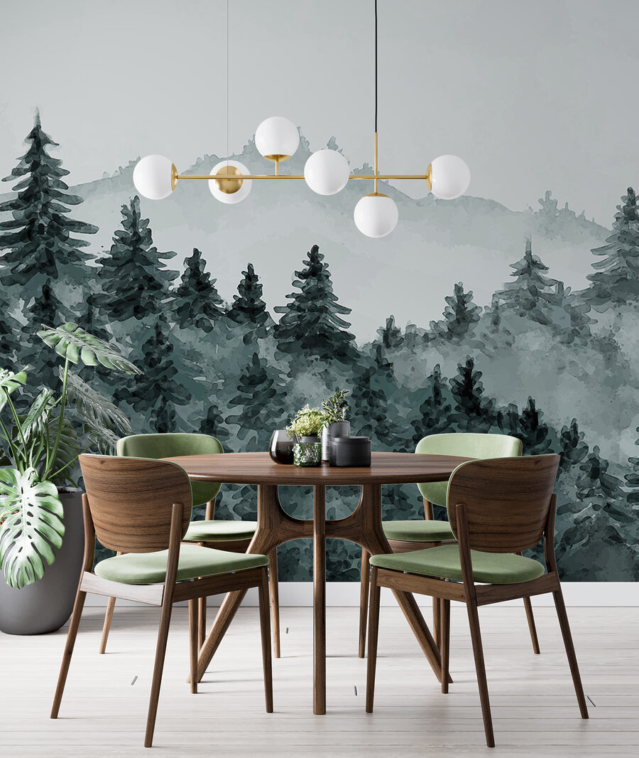 Φανταστείτε να μπαίνετε στο σαλόνι σας και ΜΠΑΜ!-βρίσκεστε ξαφνικά σε ένα ήρεμο, ομιχλώδες δάσος. Αυτή η τοιχογραφία “Νεφελώδες δάσος με αειθαλή δέντρα” είναι σαν να φέρνετε ένα γαλήνιο δάσος στους τοίχους σας. Ιδανική για εκείνες τις στιγμές που θέλετε να ξεφύγετε από τη φασαρία χωρίς να βγείτε από τον άνετο χώρο σας. Έχει αυτή την ονειρική, ακουαρέλα ατμόσφαιρα που είναι εξαιρετικά καταπραϋντική. Φανταστείτε τον πρωινό σας καφέ με αυτό το ομιχλώδες σκηνικό – είναι σαν ένα μίνι καταφύγιο! Ιδανικό για κάθε χώρο που χρειάζεται ένα άγγιγμα από τη μαγεία της φύσης, η ατμόσφαιρα αυτής της τοιχογραφίας έχει να κάνει με την ειρήνη και την ηρεμία.