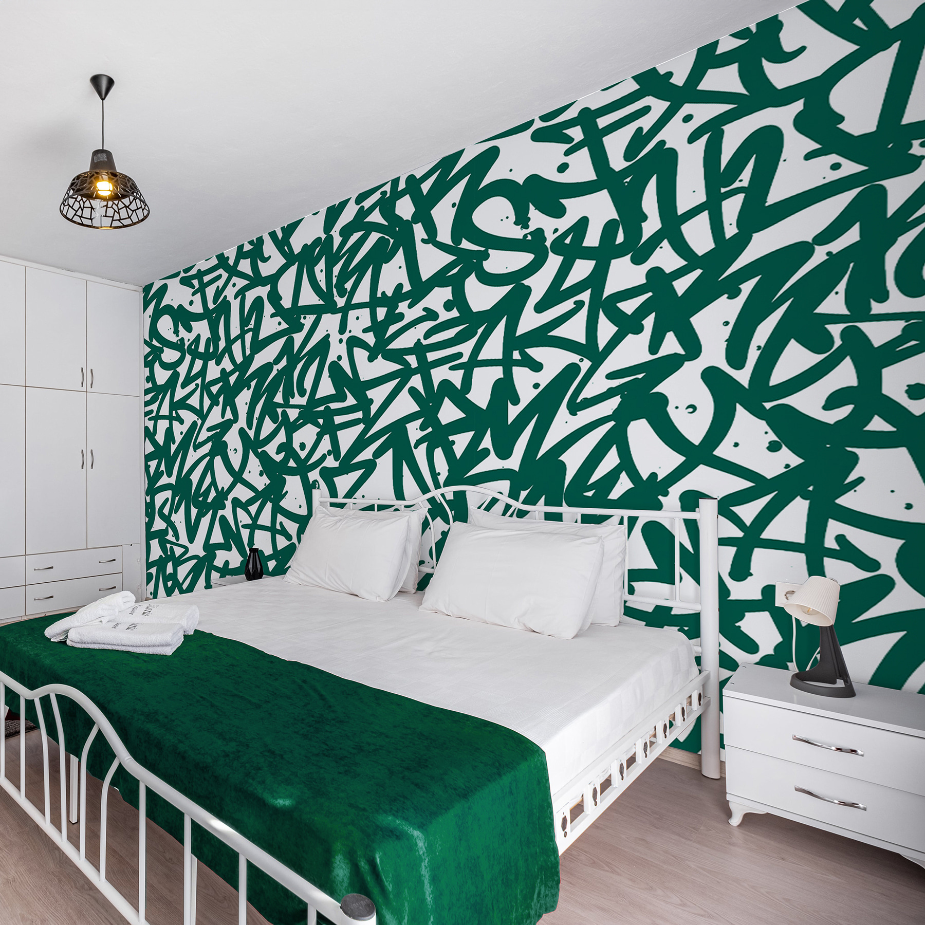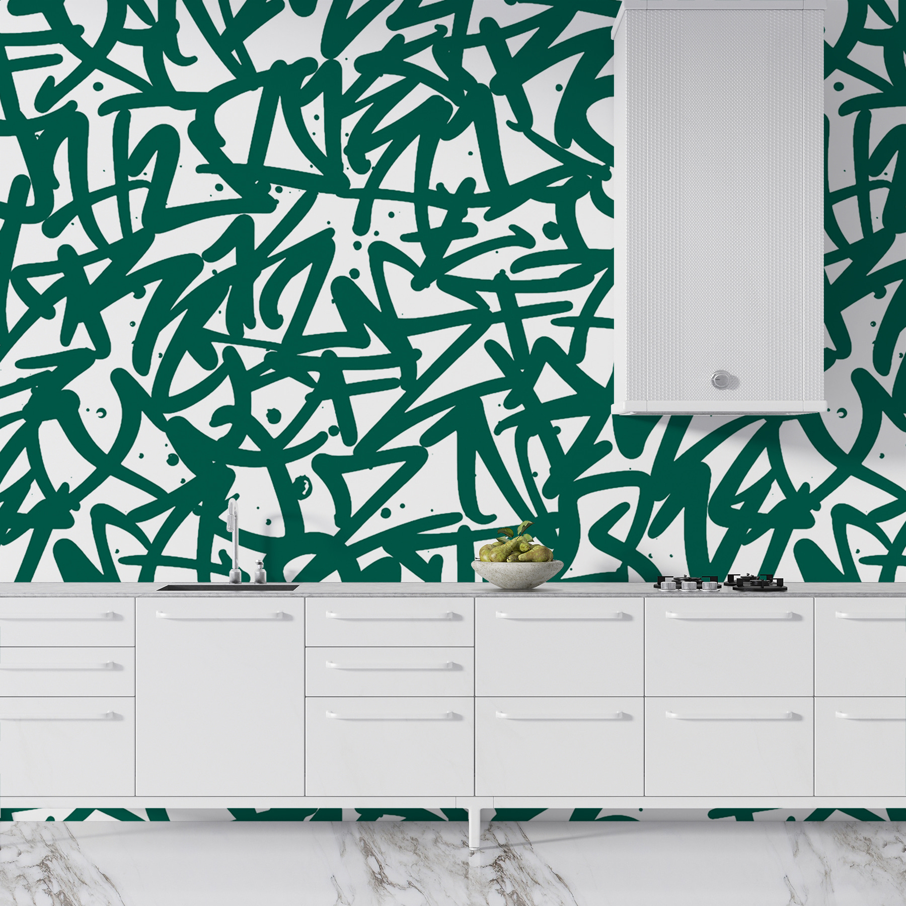 Αυτή η τοιχογραφία, “Pattern of Green Letters”, μοιάζει με το συναρπαστικό χάος των σκέψεων πριν από την πρώτη γουλιά του πρωινού καφέ. Μουντζούρες; Σίγουρα. Καθαρή δημιουργική ενέργεια; Σίγουρα. Φανταστείτε αυτές τις ζωηρές πράσινες μουτζούρες να χορεύουν στον τοίχο σας, ψιθυρίζοντας ιδιόρρυθμα μυστικά σε κάθε περαστικό. Είναι για εκείνες τις μέρες που η έμπνευση μοιάζει με μαραθώνιο – με γρήγορο ρυθμό, λίγο ατίθασο, αλλά τόσο ικανοποιητικό. Ιδανικό για έναν χώρο που χρειάζεται ένα παιχνιδιάρικο χάος ή μια πινελιά καλλιτεχνικής φινέτσας. Ποιος ήξερε ότι τα γράμματα μπορούν να μοιάζουν με πάρτι;