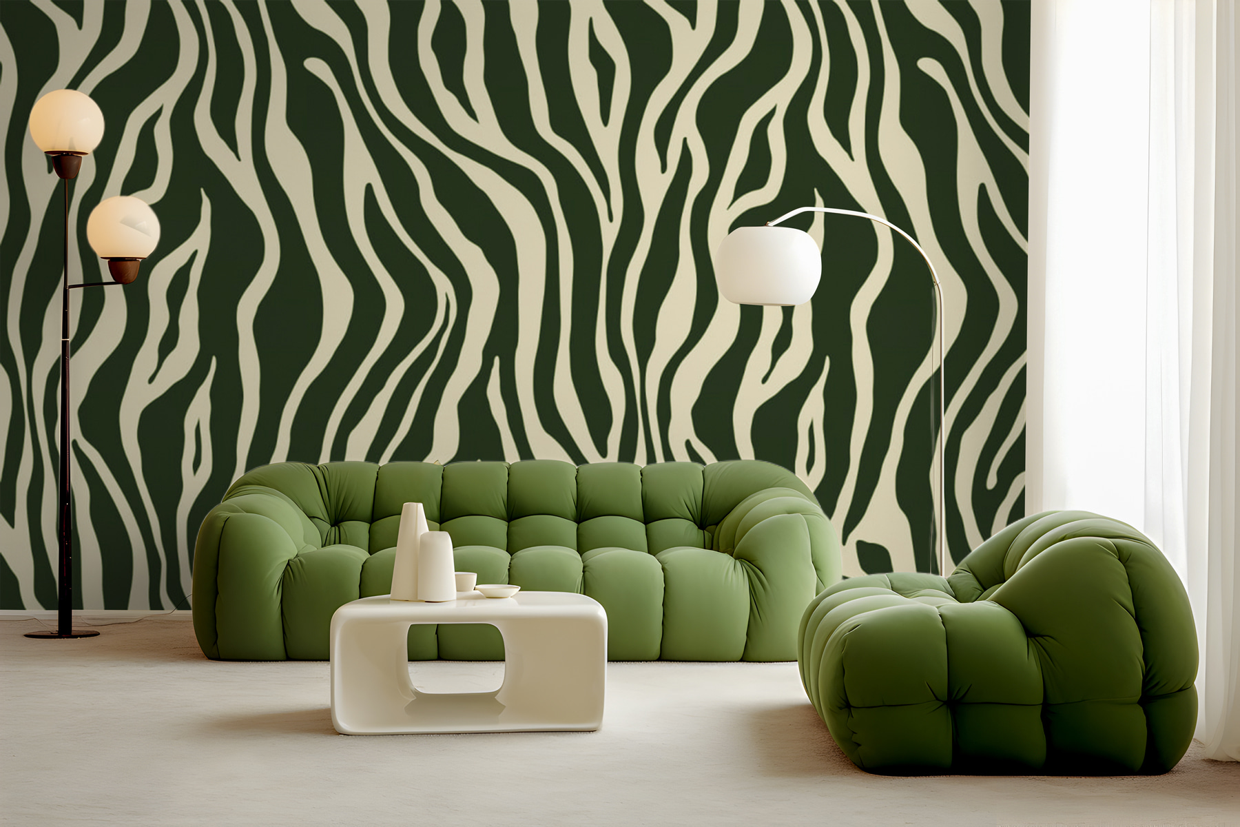 Να κάτι που δεν βλέπεις κάθε μέρα – ένα σχέδιο ζέβρας σε πράσινο και λευκό χρώμα. Έχει αυτό το funky, αφηρημένο ύφος που φωνάζει προσωπικότητα. Φανταστείτε να μπαίνετε στο σαλόνι σας και μπαμ! να σας υποδέχεται αυτή η τολμηρή, εντυπωσιακή τοιχογραφία. Δεν είναι απλώς ρίγες, είναι σαν η φύση και η σύγχρονη τέχνη να πέρασαν μια άγρια νύχτα και να ξύπνησαν υπέροχα. Ιδανικό για όποιον έχει κουραστεί από τους βαρετούς μπεζ τοίχους. Θα μπορούσε να μεταμορφώσει έναν χώρο από “meh” σε insta-worthy μέσα σε λίγα λεπτά. Και ειλικρινά, δεν σας θυμίζει κάπως μια περιπέτεια; Σαν να πρόκειται να ξεκινήσετε ένα σαφάρι στη ζούγκλα μέσα στο σπίτι σας. Σίγουρα θα προκαλέσει συζητήσεις. Έτσι, αν είστε έτοιμοι να ζωντανέψετε τους τοίχους σας και να προκαλέσετε λίγη χαρά, αυτή η τοιχογραφία σας καλύπτει. Κυριολεκτικά.