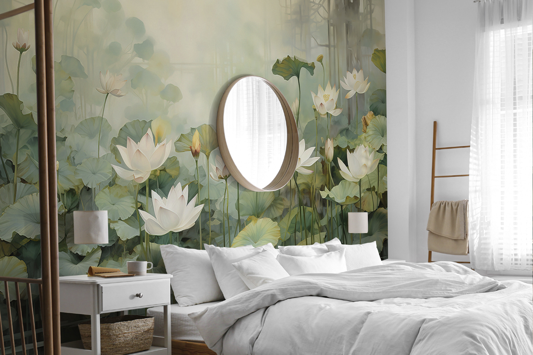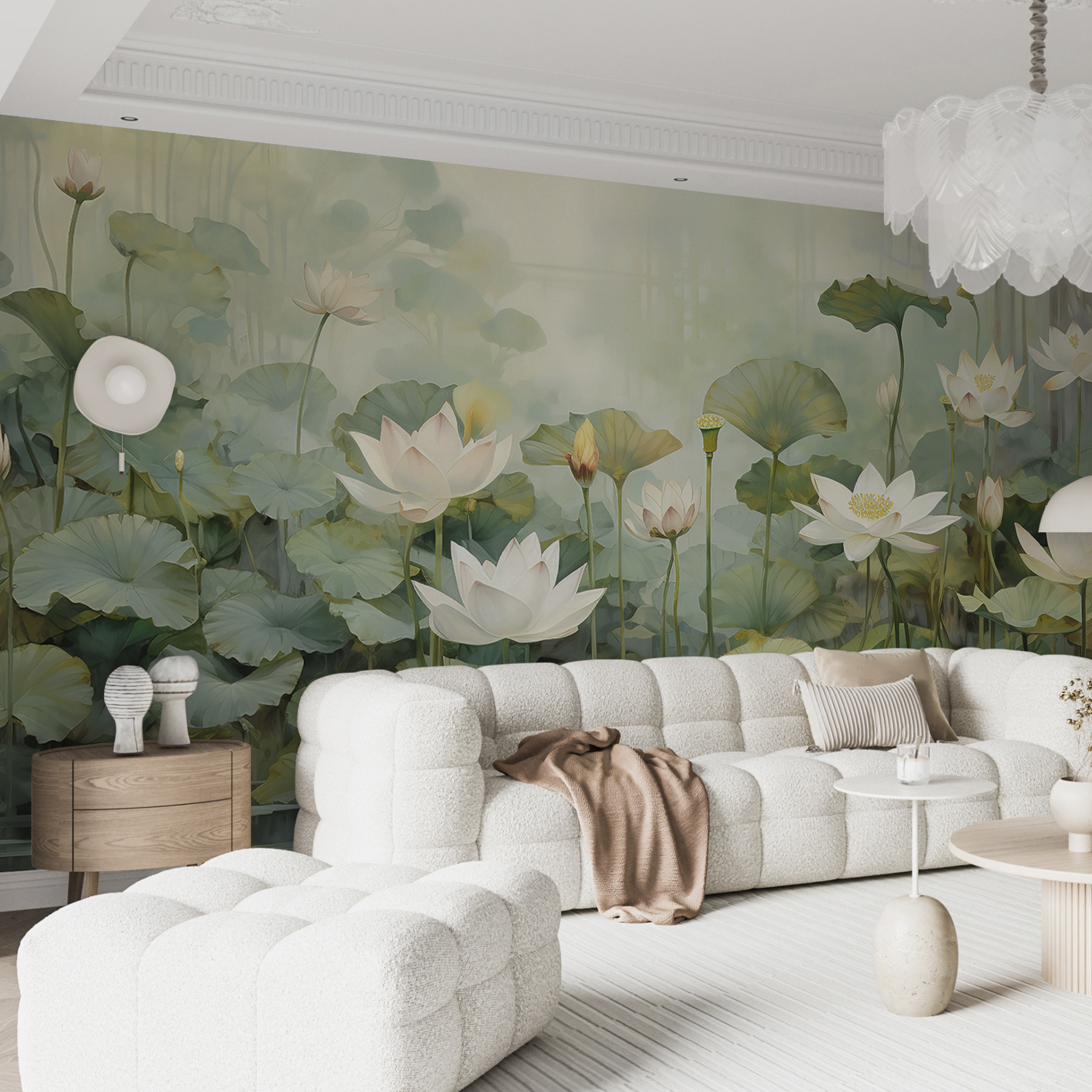 Φανταστείτε να μπαίνετε σε ένα γαλήνιο καταφύγιο με αυτή τη μαγευτική τοιχογραφία μιας ήρεμης λίμνης, διάστικτη με λεπτά άνθη και περιτριγυρισμένη από πλούσιο πράσινο. Είναι σαν να φέρνετε ένα γαλήνιο καταφύγιο μέσα στο σπίτι σας. Οι απαλές αποχρώσεις σας προσκαλούν να σταματήσετε και να αναπνεύσετε, προκαλώντας την αίσθηση τεμπέλικων απογευμάτων δίπλα σε μια ήρεμη λίμνη. Φανταστείτε ένα φλιτζάνι τσάι και ένα καλό βιβλίο στο χέρι, χαμένοι στην ομορφιά της φύσης χωρίς να βγείτε ποτέ από το δωμάτιο. Ιδανική για ένα άνετο καθιστικό ή μια ήσυχη γωνιά ανάγνωσης, αυτή η τοιχογραφία ψιθυρίζει χαλάρωση και μια πινελιά ιδιοτροπίας, κάνοντας κάθε τοίχο να μοιάζει με παράθυρο σε έναν μαγικό κήπο.