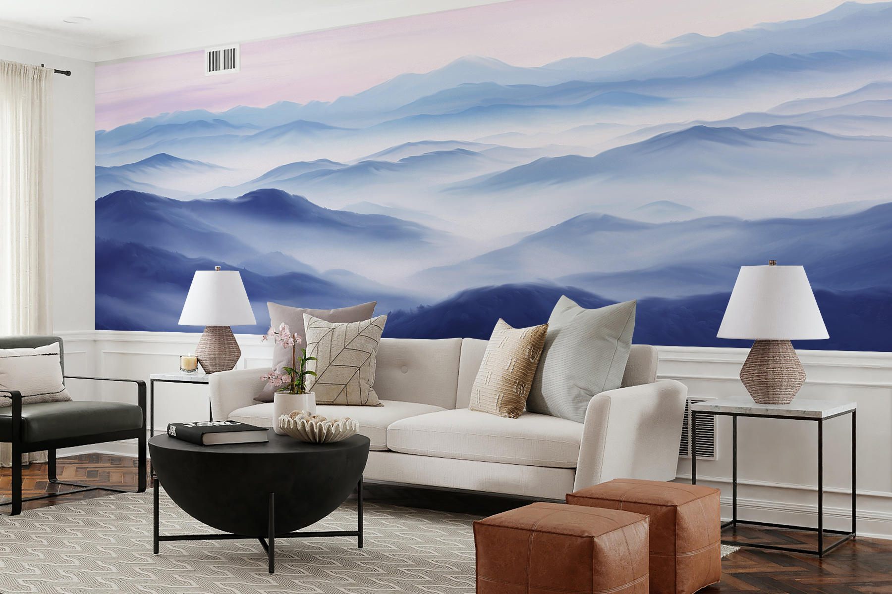 Φανταστείτε να μετατρέψετε ένα δωμάτιο σε μια ήρεμη απόδραση με αυτή την εκπληκτική τοιχογραφία “Τοπίο με βουνά και ομίχλη”. Είναι σαν να ατενίζετε έναν ατελείωτο ορίζοντα όπου οι απαλές, ομιχλώδεις κορυφές απλά λιώνουν η μία με την άλλη. Αν η γαλήνη είχε ένα έργο τέχνης, αυτό θα ήταν. Ιδανικό για εκείνες τις μέρες που θέλετε να νιώσετε την ηρεμία των βουνών χωρίς να κάνετε πεζοπορία. Δεν θα ήταν ονειρεμένο να πιείτε τον πρωινό σας καφέ χάνοντας τον εαυτό σας μέσα σε αυτά τα στρώματα του γαλάζιου; Επίσης, είναι έναυσμα για συζήτηση. Οι φίλοι σας θα ρωτούν: “Πού το βρήκες αυτό;”. Κι εσύ θα χαμογελάς.