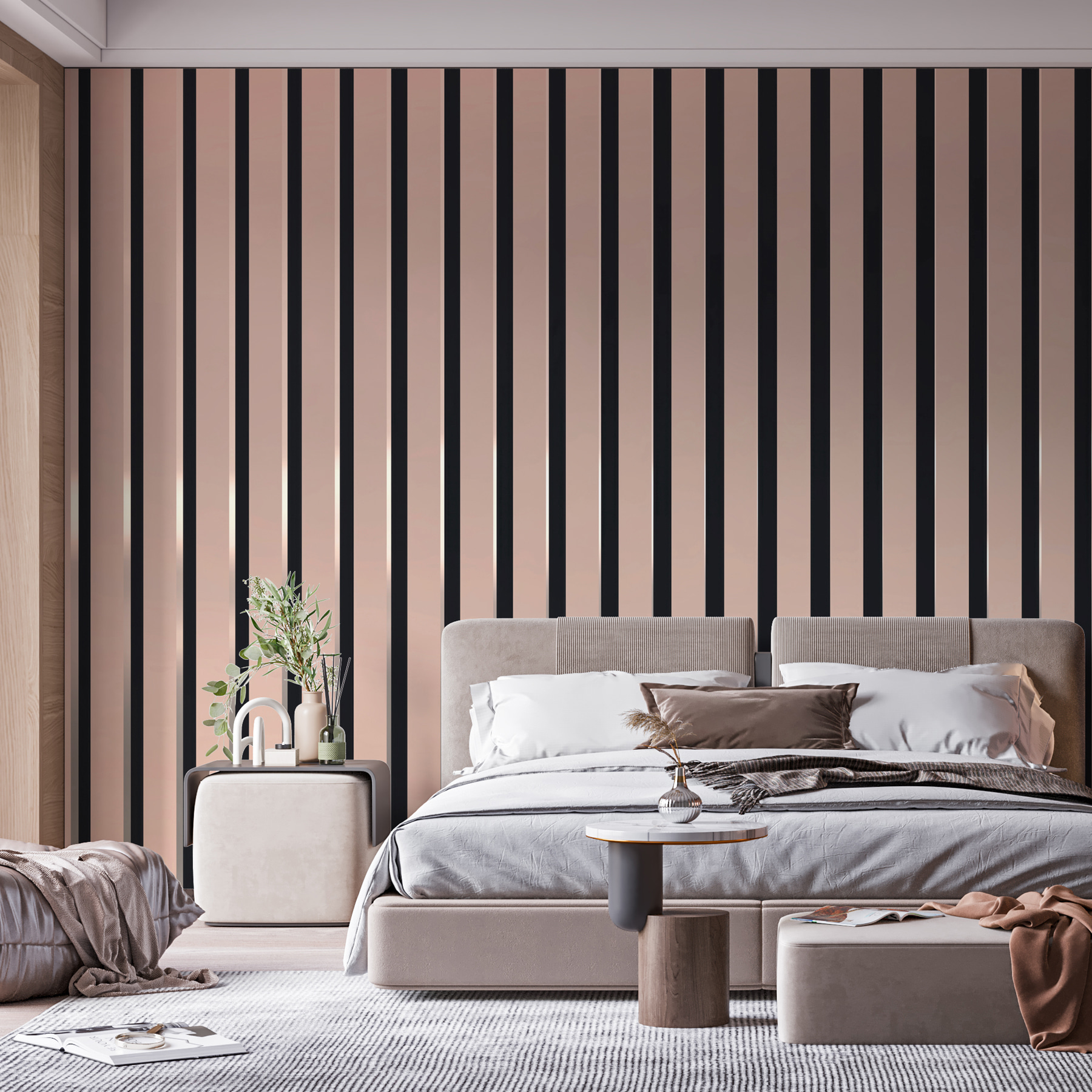 Φανταστείτε να μπαίνετε σε έναν χώρο που αισθάνεται ελαφρύς και ευάερος, χάρη σε αυτή την τοιχογραφία με κάθετες ρίγες. Φανταστείτε αυτές τις κομψές γραμμές να εκτείνονται από το δάπεδο μέχρι την οροφή, δημιουργώντας μια απρόσκοπτη ροή που ενθαρρύνει τη χαλάρωση. Είναι σαν μια απαλή αγκαλιά για τους τοίχους σας – τόσο φιλόξενη όσο και κομψή. Ιδανική για μια άνετη γωνιά ανάγνωσης ή ένα κομψό σαλόνι, αυτό το σχέδιο προσθέτει αβίαστα ενδιαφέρον χωρίς να σας καταβάλλει. Οι φίλοι θα περπατήσουν μέσα, θα ρίξουν μια ματιά και θα πουν: “Ουάου, αυτό το μέρος έχει στυλ!” Μεταμορφώστε το χώρο σας με μια πινελιά σύγχρονης γοητείας και αφήστε αυτές τις ρίγες να κάνουν τη μαγεία τους!
