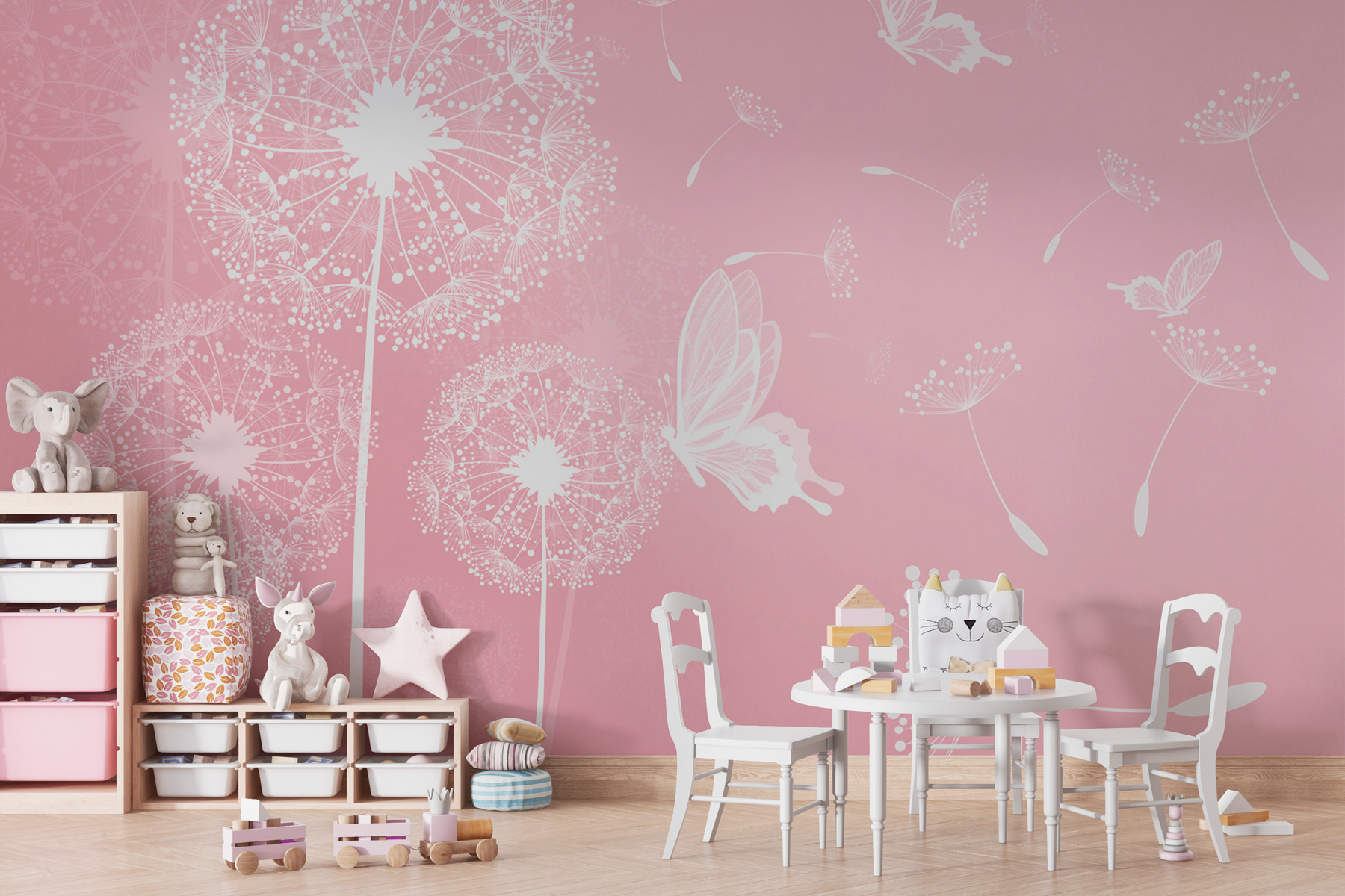 Δείτε αυτή την ονειρική τοιχογραφία με λευκά λουλούδια σε ροζ φόντο! Είναι σαν μια ανάσα φρέσκου αέρα – ιδανική για να προσθέσετε μια πινελιά ιδιοτροπίας σε κάθε δωμάτιο. Φανταστείτε να μπαίνετε στο χώρο σας και να αισθάνεστε αμέσως ανεβασμένοι από τις απαλές, ντελικάτες λευκές πικραλίδες που αιωρούνται με χάρη πάνω σε αυτό το υπέροχο παστέλ ροζ. Είναι τόσο ηρεμιστικό όσο και συγκινητικό, σαν να ρίχνετε μια ματιά σε έναν ανοιξιάτικο κήπο που ανθίζει μέσα στο σπίτι. Ιδανικό για άνετα σαλόνια, γαλήνια υπνοδωμάτια ή ακόμη και παιχνιδιάρικα παιδικά δωμάτια – αυτή η τοιχογραφία φέρνει μια βουτιά από τη γοητεία της φύσης, μετατρέποντας απλούς τοίχους σε μαγευτικούς καμβάδες. Και αυτές οι πεταλούδες; Απολύτως μαγικές! Σίγουρα θα κάνουν τον καθένα να χαμογελάσει, προσθέτοντας λίγη παραμυθένια μαγεία στην καθημερινότητά σας. Επιπλέον, είναι αρκετά ευπροσάρμοστο ώστε να συμπληρώνει διαφορετικά στυλ διακόσμησης, από μινιμαλιστικό έως vintage chic. Φανταστείτε, λοιπόν, ένα γαλήνιο καταφύγιο στο σπίτι σας με φόντο αυτή την απολαυστική τοιχογραφία.