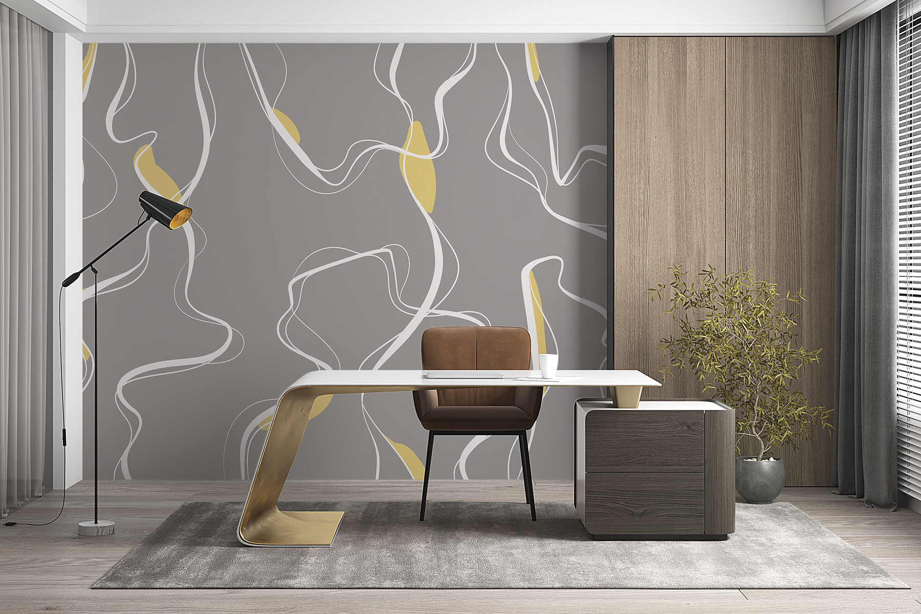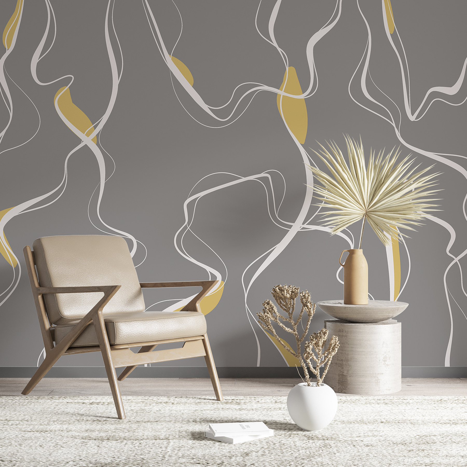 Φανταστείτε να μεταμορφώσετε το χώρο σας με αυτή την κομψή τοιχογραφία, “Λευκές γραμμές σε γκρι φόντο”. Είναι αφηρημένη αλλά και τόσο καθαρή – τέλεια για όσους εκτιμούν μια πινελιά μοντέρνου στη διακόσμησή τους. Οι ρέουσες λευκές γραμμές μοιάζουν σχεδόν με ρεύματα ποταμού, προσθέτοντας ένα ηρεμιστικό αποτέλεσμα σε κάθε δωμάτιο. Είναι σαν να έχουν αποτυπώσει έναν γαλήνιο χορό σε ένα ήρεμο φόντο.