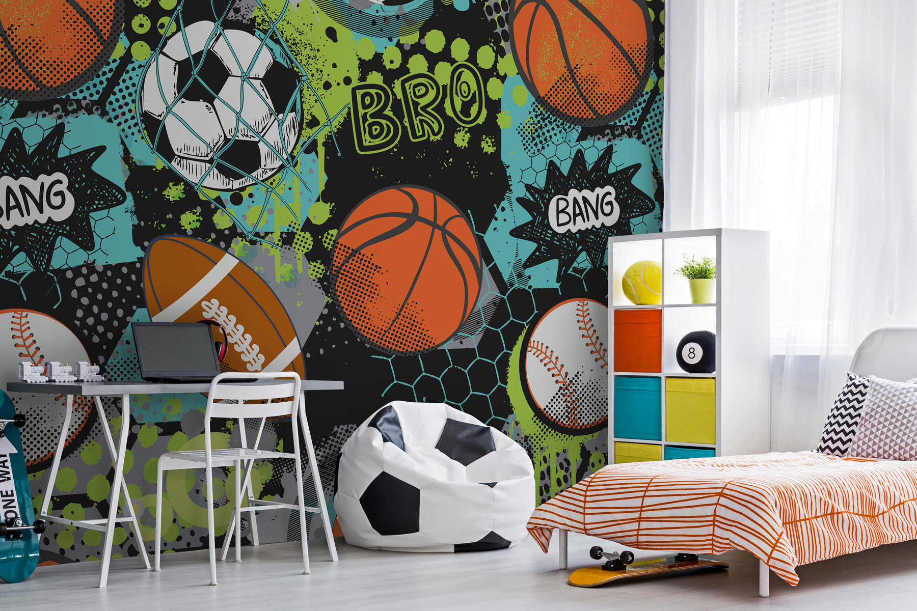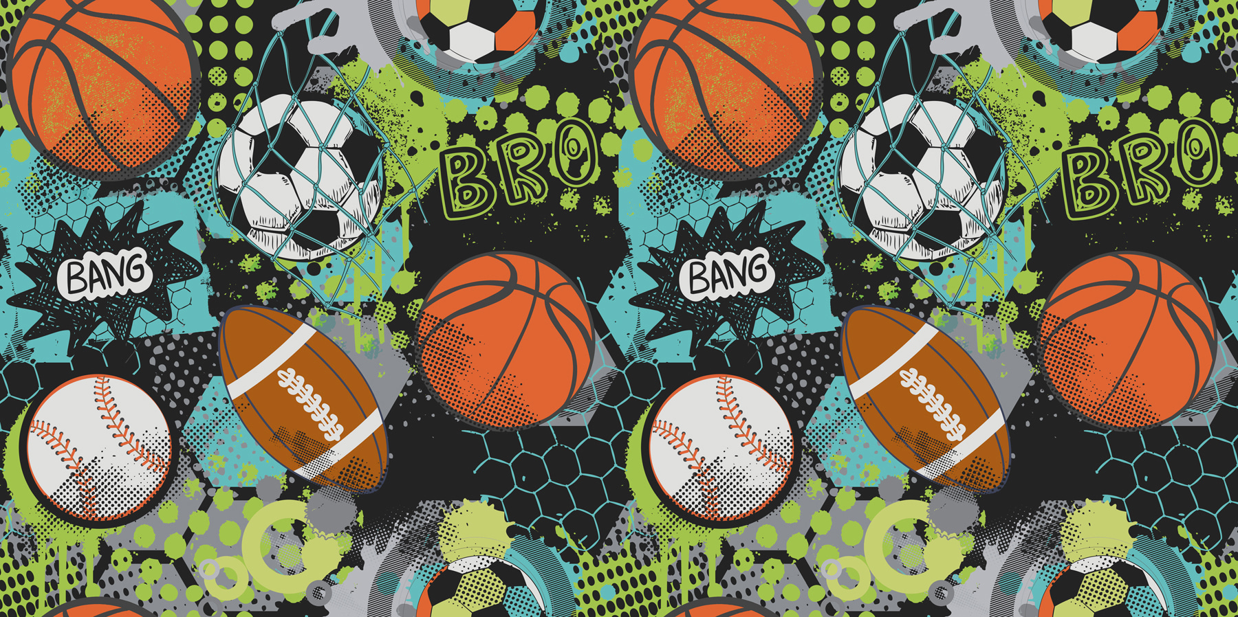 Φέρτε λίγη ζωντανή διασκέδαση στο χώρο σας με αυτό το “Ταπετσαρίες Sports Collage with Vibrant Colors”. Ιδανικό για παιδιά ή εφήβους, είναι σαν μια αθλητική αναμέτρηση ακριβώς στον τοίχο τους – μόνο που δεν υπάρχουν βουητά vuvuzelas, το υπόσχομαι! Έντονα μπλε, πράσινα και κομμάτια από την πορτοκαλί απόχρωση του μπάσκετ ξεπηδούν στη σκηνή, κάνοντάς την να μοιάζει με έναν αγώνα σε πλήρη εξέλιξη. Οι νεαροί λάτρεις των σπορ θα ενθουσιαστούν, και ε, ακόμη και οι μη λάτρεις των σπορ δεν μπορούν να αρνηθούν πόσο δροσερό και ενεργητικό φαίνεται αυτό. Επιπλέον, έχει λέξεις όπως “Bang” και “Bro” αναμεμειγμένες – είναι σχεδόν σαν ο τοίχος να μιλάει πίσω! Τοποθετήστε το σε μια κρεβατοκάμαρα, ένα δωμάτιο παιχνιδιών ή ακόμα και στο χώρο μιας νεαρής γυναίκας (ποιος είπε ότι ο αθλητισμός δεν είναι υπέροχος;) και δείτε ολόκληρο το δωμάτιο να ζωντανεύει με δράση και ενθουσιασμό. Ιδανικό για όποιον θέλει μια δόση λάμψης και μια πινελιά παιχνιδιάρικη διάθεση στη διακόσμησή του.