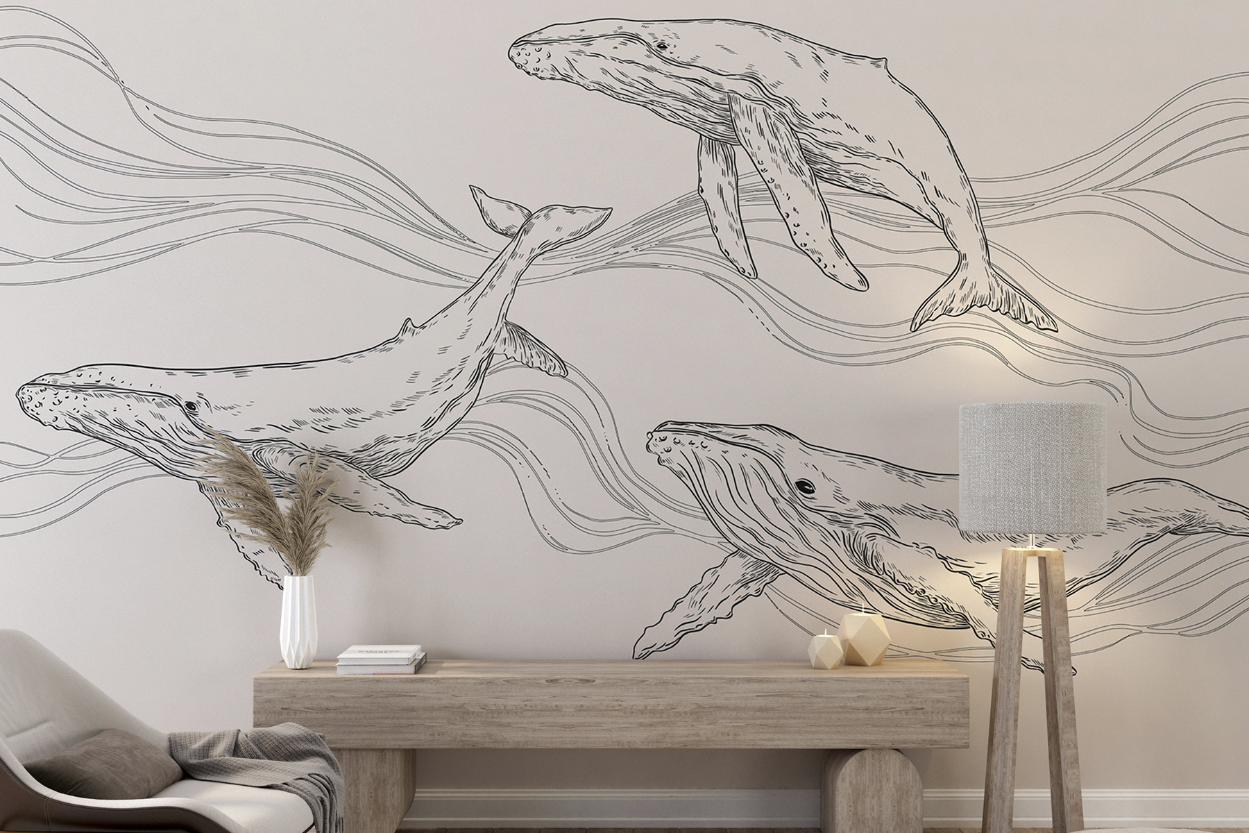 Φανταστείτε αυτό: ένα τρίο μεγαλόπρεπων φαλαινών που γλιστρούν στα βάθη, ακριβώς στο σαλόνι σας. Αυτή η τοιχογραφία τοίχου, με τον ευφάνταστο τίτλο “Ομάδα φαλαινών που κολυμπούν στο νερό”, είναι σαν να φέρνει τη γαλήνη του ωκεανού στο χώρο σας. Αποτελεί μέρος των κατηγοριών Τοιχογραφίες ζώων, Ταπετσαρία σχεδιαστών για τοίχο, Δημοφιλείς τοιχογραφίες τοίχου και Τοιχογραφίες παραλίας – βασικά, έχει όλα τα εύσημα.