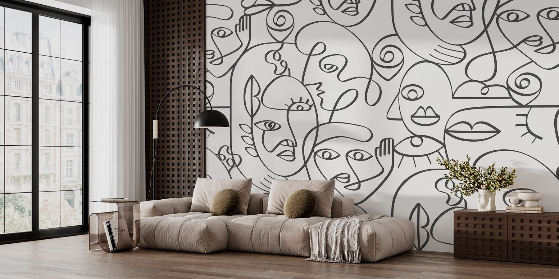Μεταμορφώστε οποιοδήποτε δωμάτιο σε έναυσμα για συζήτηση με αυτή την ιδιόμορφη τοιχογραφία τοίχου με ένα παιχνιδιάρικο μείγμα από μαύρα και λευκά πρόσωπα. Είναι σαν να μπαίνετε σε μια γκαλερί αφηρημένης τέχνης, μέσα στο σπίτι σας. Κάθε έκφραση μοιάζει να λέει τη δική της ιστορία, εκπέμποντας μια ενεργητική ατμόσφαιρα που είναι δύσκολο να αγνοήσετε. Φανταστείτε τους καλεσμένους να σταματούν να θαυμάζουν αυτό το μοναδικό σχέδιο, ενώ εσείς πίνετε τον καφέ σας, καυχιέμαι άνετα για τις κομψές επιλογές σας στη διακόσμηση. Ιδανικό για ένα σαλόνι ή ακόμη και για μια ζεστή γωνιά, φέρνει μια διασκεδαστική, καλλιτεχνική ατμόσφαιρα που μοιάζει φρέσκια και φιλόξενη. Αφήστε αυτά τα πρόσωπα να προκαλέσουν μερικές ενδιαφέρουσες συζητήσεις!