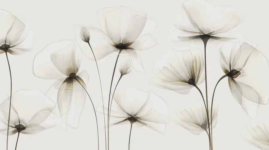 Νιώθετε ότι οι τοίχοι σας χρειάζονται λίγη μαγεία; Δείτε αυτή την τοιχογραφία τοίχου με αυτά τα τόσο λεπτά λουλούδια που μοιάζουν σχεδόν να αιωρούνται στον αέρα. Τα απαλά, διαφανή πέταλα σε ένα καθαρό λευκό φόντο δίνουν μια τόσο γαλήνια, ηρεμιστική ατμόσφαιρα. Φανταστείτε να ξυπνάτε με αυτή την ομορφιά κάθε μέρα – σαν να έχετε τον δικό σας ήσυχο κήπο χωρίς να χρειάζεται να τον ποτίζετε.