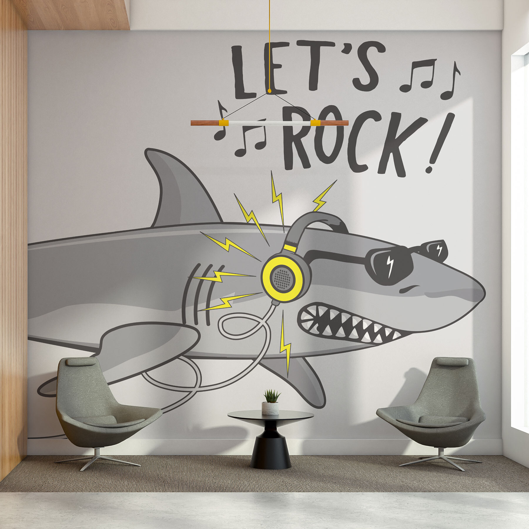 Βυθιστείτε σε μια θάλασσα δροσιάς με αυτή την ιδιόμορφη τοιχογραφία τοίχου με έναν καρχαρία καρτούν που φοράει ακουστικά και γυαλιά ηλίου. Είναι σαν την υποθαλάσσια εκδοχή του αγαπημένου σας ροκ σταρ, έτοιμη να ανεβάσει τη διάθεση σε κάθε χώρο. Φανταστείτε αυτό το ζωντανό κομμάτι να αιχμαλωτίζει το πνεύμα ενός εφηβικού στέκι, όπου το γέλιο αναμειγνύεται με φρέσκες μελωδίες. Ιδανικό για να προσθέσετε αυτή την πινελιά διασκέδασης σε ένα υπνοδωμάτιο, ένα δωμάτιο παιχνιδιών ή ακόμα και σε ένα χώρο μελέτης – πείτε αντίο στους βαρετούς τοίχους! Η παιχνιδιάρικη ενέργεια αυτής της τοιχογραφίας μπορεί να εμπνεύσει και μερικές παράξενες χορευτικές κινήσεις. Ποιος να το φανταζόταν ότι ένας καρχαρίας θα μπορούσε να είναι τέτοιος ρυθμιστής τάσεων;