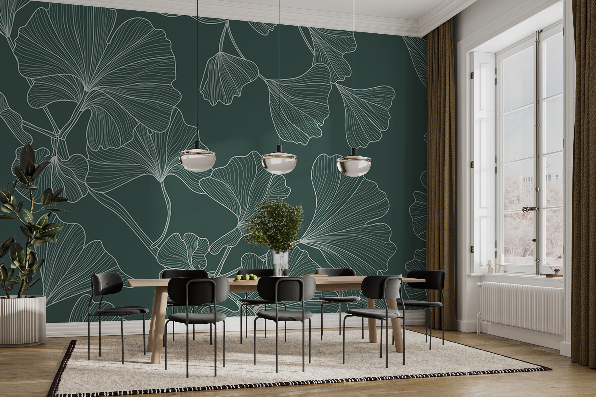 Μεταμορφώστε το χώρο σας με το μοτίβο Ταπετσαρίες Elegant Ginkgo Leaves Pattern. Αυτό το όμορφο κομμάτι τοιχογραφίας συνδυάζει την κομψότητα της φύσης με ένα άγγιγμα αφηρημένης τέχνης. Φανταστείτε να μπαίνετε σε ένα δωμάτιο που κοσμείται από τα ευγενικά φύλλα ginkgo, προσθέτοντας έναν ψίθυρο εκλέπτυνσης και έναν υπαινιγμό ζεν, ακριβώς όπως ένας γαλήνιος υπαίθριος κήπος που μεταφέρεται σε εσωτερικούς χώρους. Με τις ρευστές γραμμές και τα ηρεμιστικά χρώματα, είναι το τέλειο σκηνικό για άνετες στιγμές ή ζωηρές συζητήσεις. Φανταστείτε το στο σαλόνι σας, όπου προσελκύει αθόρυβα κομπλιμέντα και μοιάζει με μια απαλή, φυλλώδη αγκαλιά.