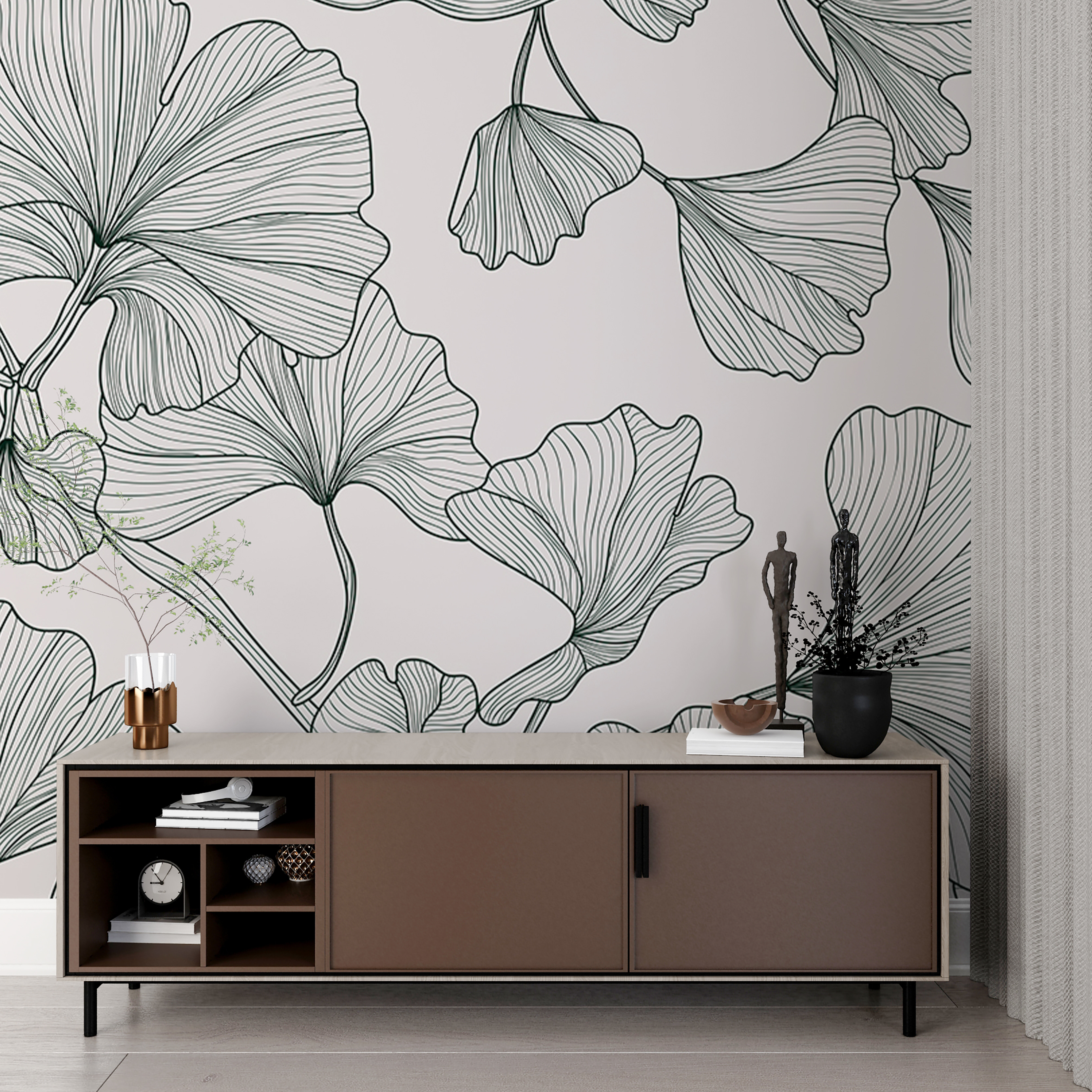 Θέλατε ποτέ να φέρετε ένα άγγιγμα φύσης στο χώρο σας χωρίς να χρειάζεται να συντηρείτε τα φυτά; Η τοιχογραφία τοίχου Elegant Ginkgo Leaf Pattern Design σας έχει καλύψει. Το λεπτό και περίπλοκο μοτίβο φύλλων ginkgo αυτής της τοιχογραφίας είναι σαν την τέχνη της Μητέρας Φύσης, παγωμένη στο χρόνο. Είναι ιδανικό για τη μετατροπή οποιουδήποτε δωματίου σε ένα ηρεμιστικό καταφύγιο. Φανταστείτε να μπαίνετε στο σαλόνι σας μετά από μια κουραστική μέρα και να σας υποδέχεται αυτό το καταπραϋντικό σχέδιο. Ίσως νιώσετε σαν να έχετε μπει σε ένα γαλήνιο δασικό ξέφωτο. Είτε πρόκειται για έναν χαρακτηριστικό τοίχο είτε για ένα ολόκληρο δωμάτιο, αυτή η τοιχογραφία προσθέτει μια πινελιά κομψότητας και μια ανάσα φρέσκου αέρα στη διακόσμησή σας. Επιπλέον, είναι ευέλικτη – ταιριάζει απόλυτα με αφηρημένα, τροπικά ή ακόμη και γεωμετρικά θέματα. Είναι σαν να έχετε λίγο από την ύπαιθρο, σε εσωτερικούς χώρους!