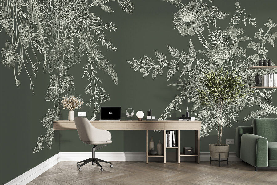Μεταμορφώστε έναν απλό τοίχο σε ένα βοτανικό αριστούργημα με αυτή την κομψή φλοράλ τοιχογραφία. Φανταστείτε περίπλοκα σκίτσα λουλουδιών να χορεύουν σε ένα βαθύ, πλούσιο φόντο – είναι σαν να φέρνετε έναν κήπο στο εσωτερικό χωρίς να χρειάζεται να ποτίσετε τίποτα! Φανταστείτε να ξυπνάτε σε ένα δωμάτιο που μοιάζει με δημιουργική όαση, προκαλώντας έμπνευση και ηρεμία ταυτόχρονα. Είναι ιδανικό για αυτή τη ζεστή γωνιά ανάγνωσης ή για ένα κομψό γραφείο. Οι φίλοι θα θαυμάσουν το μοναδικό σας γούστο. Επιπλέον, ποιος μπορεί να αντισταθεί σε αυτές τις παράξενες λεπτομέρειες; Δεν είναι απλώς διακόσμηση- είναι μια εμπειρία που ψιθυρίζει τα μυστικά της φύσης κάθε φορά που ρίχνετε μια ματιά.