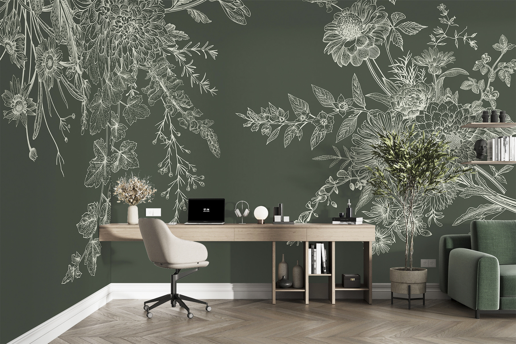 Μεταμορφώστε έναν απλό τοίχο σε ένα βοτανικό αριστούργημα με αυτή την κομψή φλοράλ τοιχογραφία. Φανταστείτε περίπλοκα σκίτσα λουλουδιών να χορεύουν σε ένα βαθύ, πλούσιο φόντο – είναι σαν να φέρνετε έναν κήπο στο εσωτερικό χωρίς να χρειάζεται να ποτίσετε τίποτα! Φανταστείτε να ξυπνάτε σε ένα δωμάτιο που μοιάζει με δημιουργική όαση, προκαλώντας έμπνευση και ηρεμία ταυτόχρονα. Είναι ιδανικό για αυτή τη ζεστή γωνιά ανάγνωσης ή για ένα κομψό γραφείο. Οι φίλοι θα θαυμάσουν το μοναδικό σας γούστο. Επιπλέον, ποιος μπορεί να αντισταθεί σε αυτές τις παράξενες λεπτομέρειες; Δεν είναι απλώς διακόσμηση- είναι μια εμπειρία που ψιθυρίζει τα μυστικά της φύσης κάθε φορά που ρίχνετε μια ματιά.