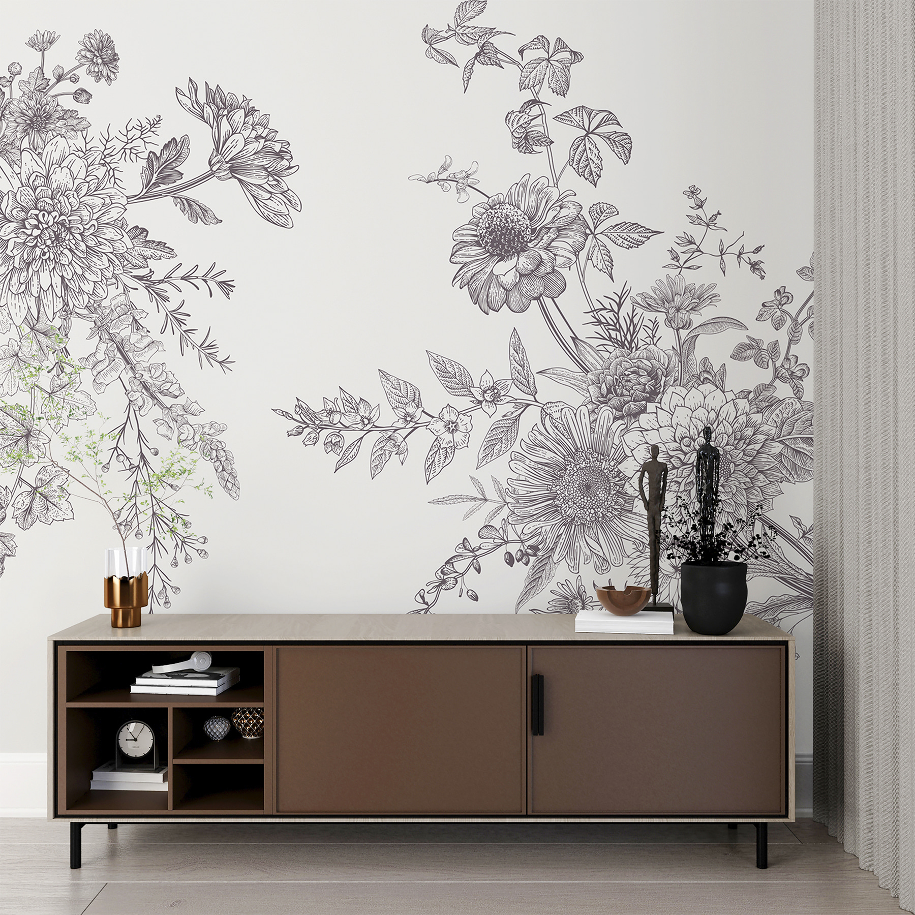 Φανταστείτε να μεταμορφώσετε το χώρο σας με αυτή την τοιχογραφία “Περίπλοκο σχέδιο σκίτσου με μολύβι”. Είναι σαν να φέρνετε έναν κήπο μέσα στο σπίτι, χωρίς το ενοχλητικό πότισμα. Ιδανικό για να προσθέσετε μια πινελιά φύσης, είτε είστε φανατικοί των λουλουδιών είτε απλώς αγαπάτε τις ηρεμιστικές δονήσεις. Οι λεπτομέρειες είναι άγριες – κάθε πέταλο, φύλλο και στέλεχος έχει αυτή τη χειροποίητη γοητεία που μοιάζει τόσο κλασική όσο και μοντέρνα.