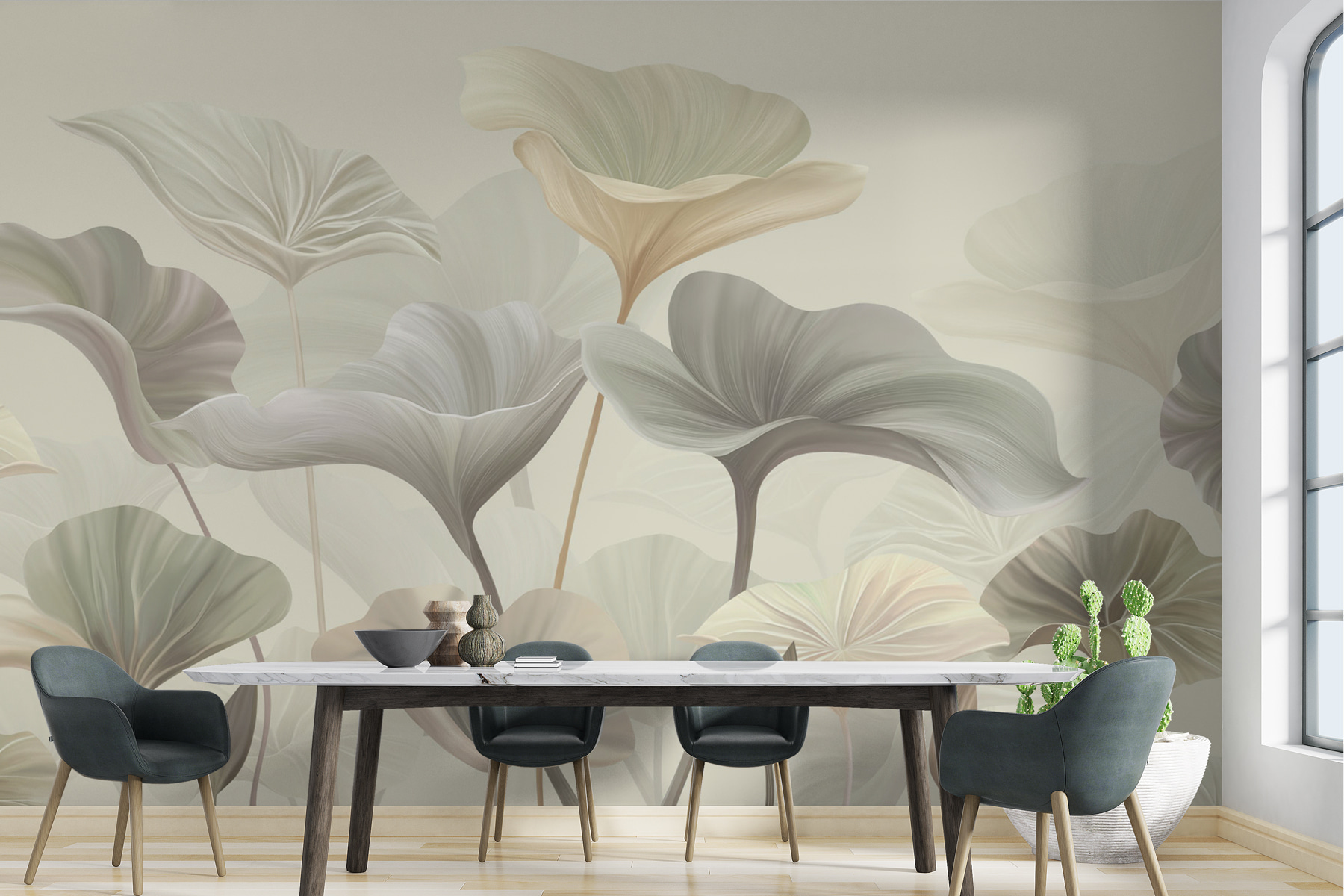 Φανταστείτε να μπαίνετε σε έναν γαλήνιο κήπο κάθε φορά που μπαίνετε σε ένα δωμάτιο. Αυτό ακριβώς θα έχετε με την τοιχογραφία “Gentle Waves of Delicate Foliage”. Αυτά τα απαλά, ονειρικά φύλλα σε απαλούς τόνους; Καθαρή χαλάρωση για τα μάτια και την ψυχή σας. Σκεφτείτε το σαν να φέρνετε ένα κομμάτι του τροπικού παραδείσου μέσα στο σπίτι, χωρίς το κόστος του αεροπορικού εισιτηρίου.