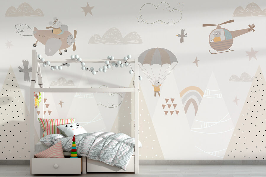 Τα διακριτικά, παστέλ χρώματα και οι παιχνιδιάρικες λεπτομέρειες προσθέτουν μαγεία όπου κι αν κοιτάξετε – σύννεφα, αστέρια, ακόμα και ένα λαγουδάκι που πέφτει με αλεξίπτωτο! Μπορείτε σχεδόν να ακούσετε το απαλό φύσημα του ανέμου και το χαρούμενο κελάηδισμα των πουλιών. Θα ήταν ιδανικό για να πυροδοτήσει τη φαντασία των μικρών παιδιών, μετατρέποντας τις ιστορίες πριν τον ύπνο σε μεγαλειώδεις ιστορίες εναέριων αποδράσεων.