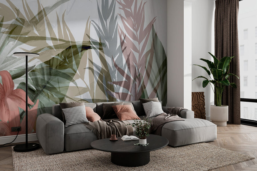 Φανταστείτε αυτό: μια τοιχογραφία που μεταμορφώνει τον τοίχο σας σε μια γαλήνια όαση. Σας παρουσιάζουμε το αφηρημένο σχέδιο λουλουδιών με φύλλα σε στρώσεις. Είναι σαν μια μίνι-διακοπή κάθε φορά που μπαίνετε στο δωμάτιο. Αυτά τα απαλά στρώματα φύλλων και λουλουδιών – σχεδόν σαν ένα απαλό αεράκι που θροΐζει μέσα σε ένα τροπικό δάσος. Τα απαλά χρώματα συνδυάζονται μεταξύ τους σε έναν καταπραϋντικό χορό, κάνοντας κάθε χώρο να αισθάνεται φρέσκος και ήρεμος.