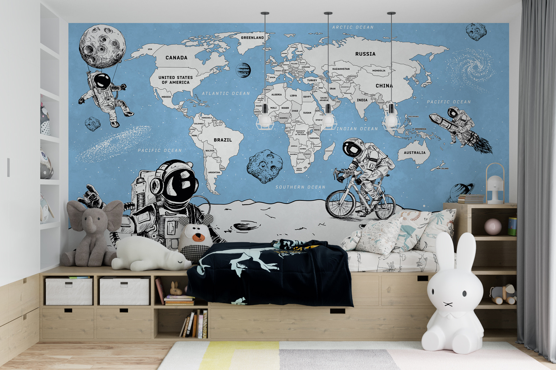 Φανταστείτε αυτή την τοιχογραφία να φωτίζει το δωμάτιό σας – είναι σαν να μπαίνετε σε έναν εντελώς νέο κόσμο! Έχετε αυτό το σχέδιο ενός αστροναύτη που κάνει ποδήλατο ακριβώς πάνω στο φεγγάρι, με τη Γη να αιωρείται απαλά στο φόντο. Είναι ιδιόμορφο, ζωντανό και λίγο μαγικό. Ιδανικό για παιδιά, ή για όποιον έχει ακόμα παιδική καρδιά.