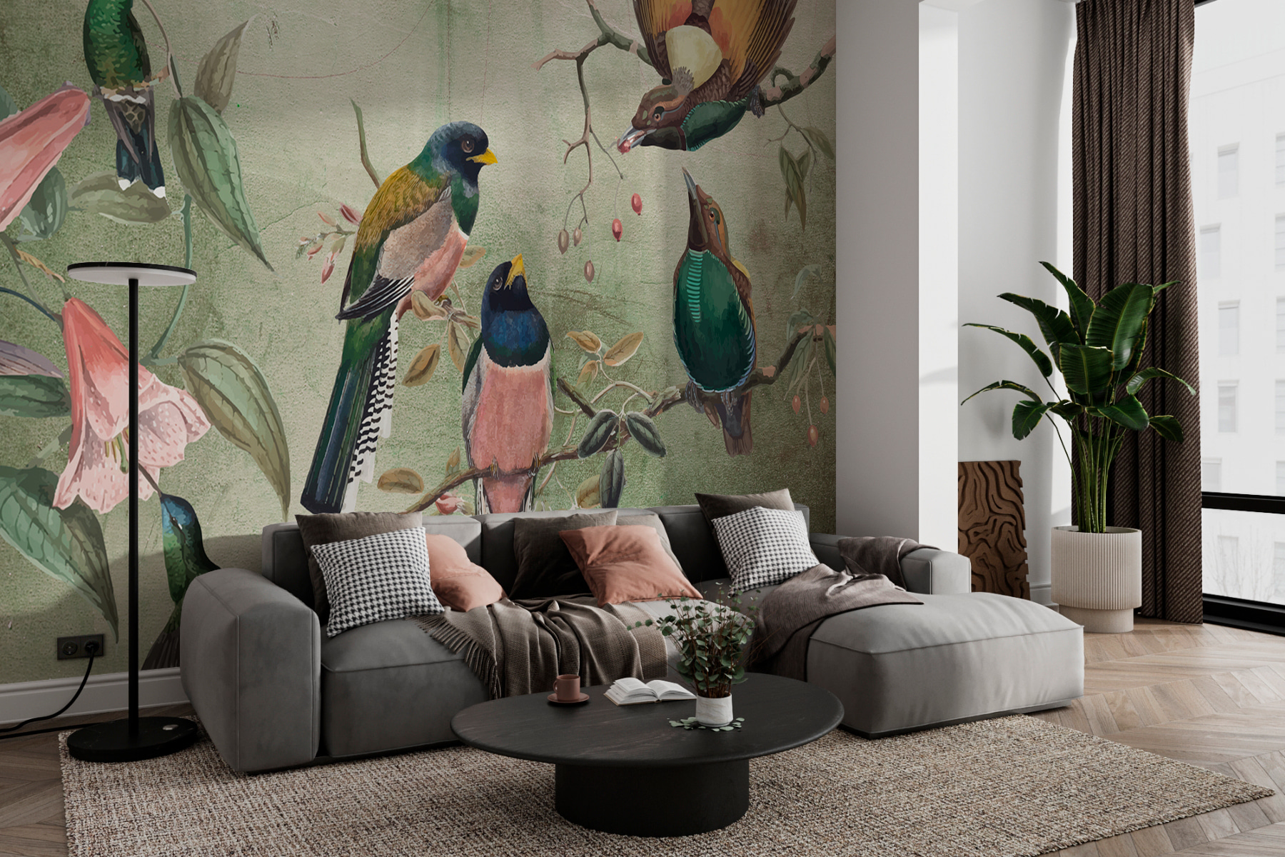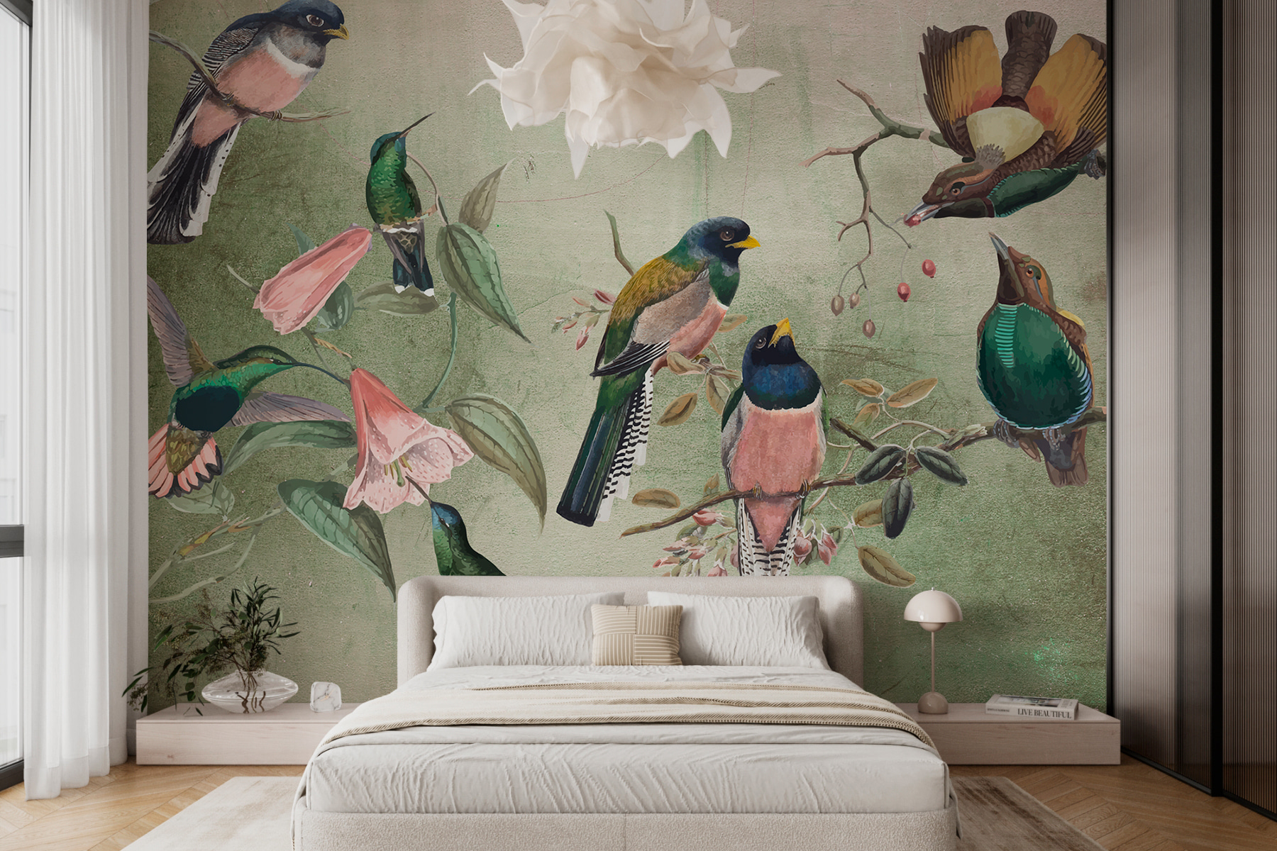 Φανταστείτε να ξυπνάτε με μια χαρούμενη σερενάτα από πολύχρωμα πουλιά σκαρφαλωμένα στα κλαδιά – χωρίς να χρειάζεται να αφήσετε το άνετο κρεβάτι σας! Αυτή η τοιχογραφία “Ομάδα πουλιών σε κλαδί” είναι σαν να έχετε ένα μικρό κομμάτι της φύσης στο σαλόνι σας. Το υπέροχο μείγμα πουλιών και λουλουδιών δίνει αυτή την ήρεμη, αλλά ζωντανή ατμόσφαιρα που σας κάνει να θέλετε να ρίξετε ένα φλιτζάνι τσάι και να καθίσετε για λίγο. Ιδανικό για τους λάτρεις των πουλιών ή για όποιον θέλει ένα άγγιγμα από την ύπαιθρο μέσα στο σπίτι του. Κάθε ματιά σε αυτή την τοιχογραφία – μια στιγμή καθαρής απόλαυσης. Μπόνους: δεν χρειάζεται να ανησυχείτε για το τάισμα αυτών των φτερωτών φίλων!