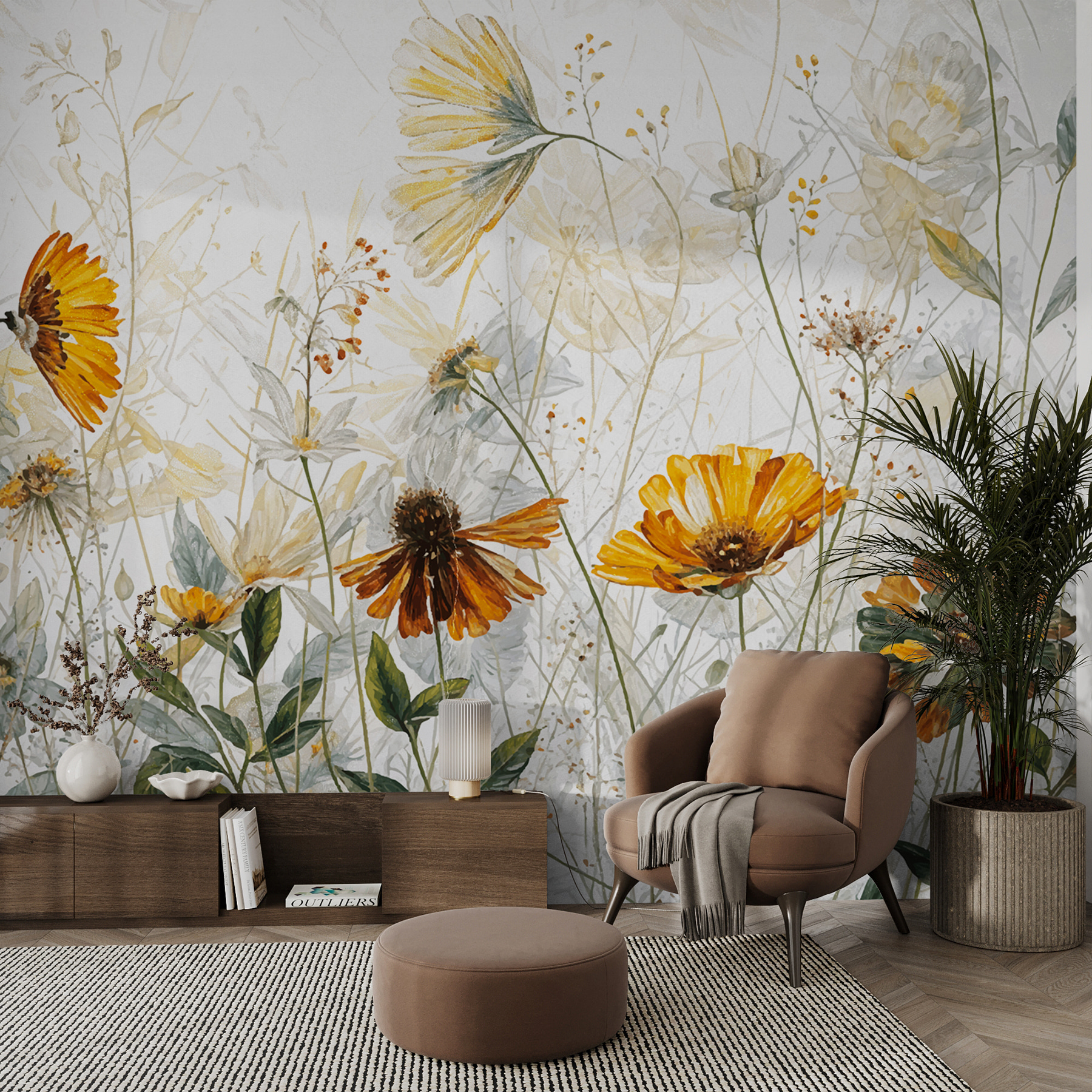 Φανταστείτε να ξυπνάτε σε ένα λιβάδι με αγριολούλουδα κάθε μέρα – αυτό είναι που φέρνει στον χώρο σας αυτή η τοιχογραφία “Wildflowers Dancing in the Breeze”. Είναι σαν οι τοίχοι σας να σας δίνουν μια απαλή αγκαλιά από τη φύση. Οι απαλές αποχρώσεις και το λεπτό σχέδιο ακουαρέλας κάνουν την αίσθηση ότι τα λουλούδια λικνίζονται ακριβώς μπροστά στα μάτια σας – ηρεμιστικά και τόσο όμορφα. Ιδανικό για να προσθέσετε μια πινελιά ιδιοτροπίας στο σαλόνι σας ή να δώσετε μια γαλήνια ατμόσφαιρα στη γωνιά ανάγνωσης. Έχει αυτόν τον μαγικό τρόπο να σας κάνει να αισθάνεστε χαλαροί και εμπνευσμένοι, σαν μια ανάσα φρέσκου αέρα σε εσωτερικό χώρο.