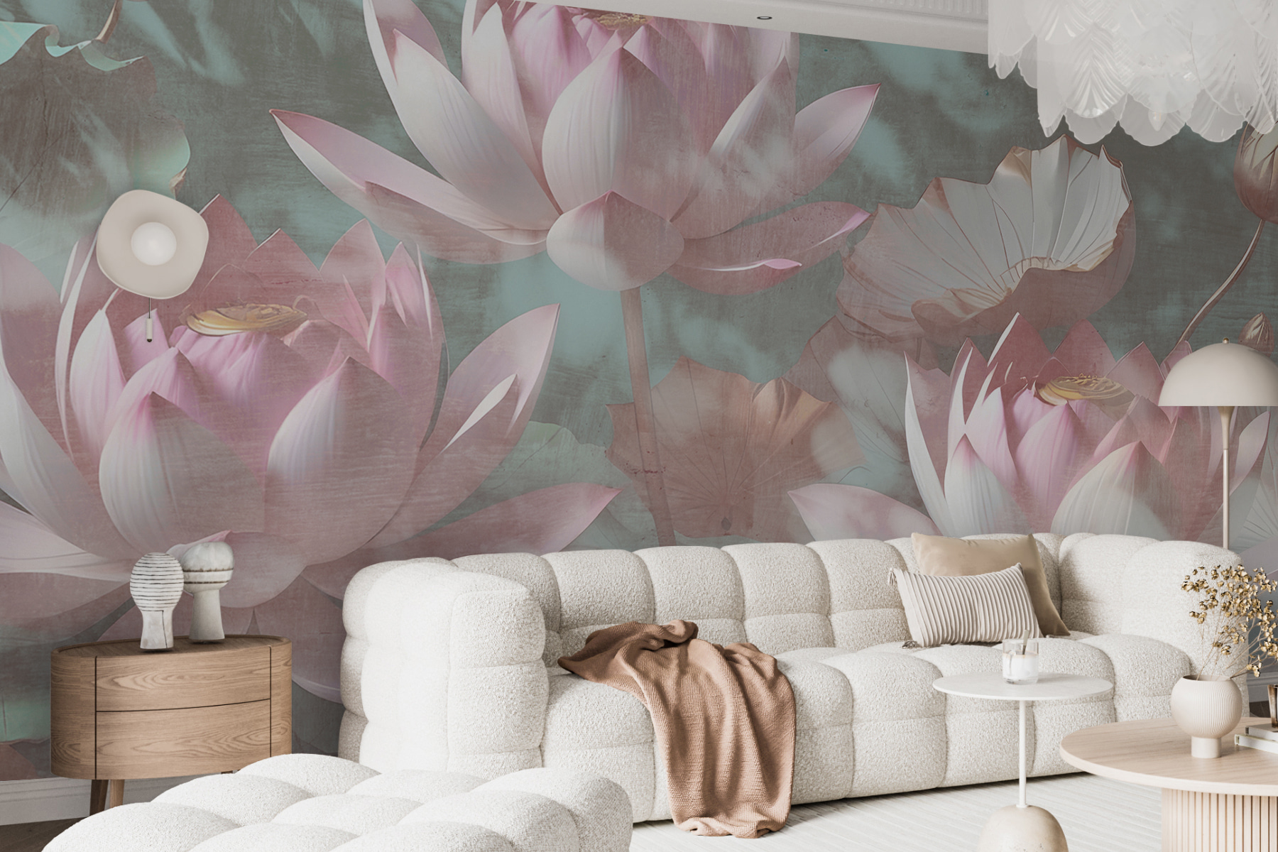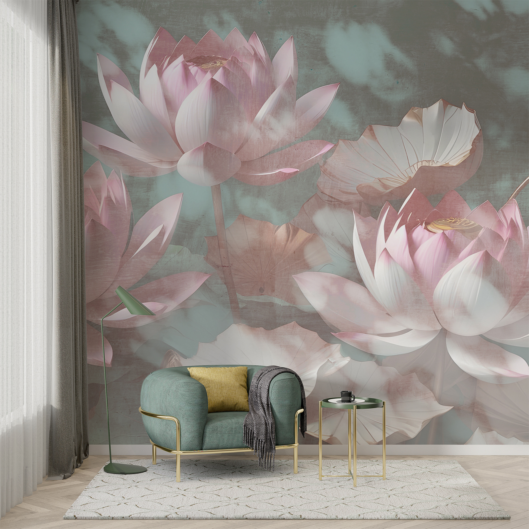 Ταπετσαρίες Παστέλ άνθη λωτού ανάμεσα σε φύλλα. (Κωδικός προϊόντος: w00710)