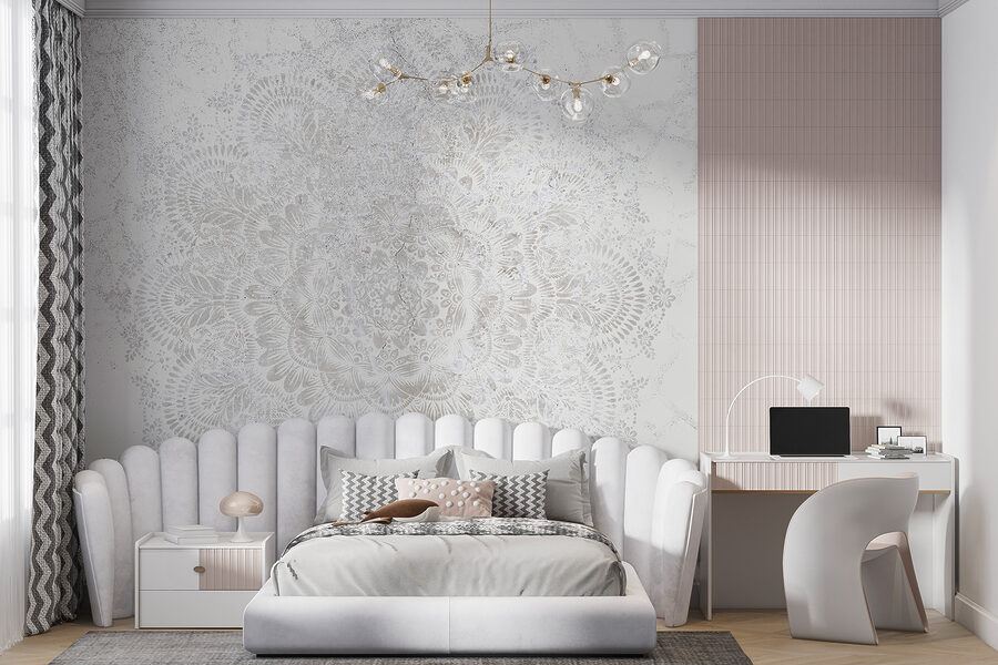 Φανταστείτε να μπαίνετε σε ένα δωμάτιο και να σας υποδέχεται ένας γαλήνιος χορός από λευκά μοτίβα στον τοίχο. Είναι σαν κάποιος να ψιθυρίζει κομψότητα και αυτή να αντηχεί πίσω σε σπείρες και βρόχους. Αυτή η τοιχογραφία με κυκλικό μοτίβο μοιάζει σχεδόν ζωντανή – σαν μια απαλή χιονόπτωση σε μια απόλυτα ήρεμη μέρα. Οι φίλοι σας μπορεί να νομίζουν ότι είναι η πιο φανταχτερή νιφάδα χιονιού! Παίζει με το φως με τον πιο απαλό τρόπο, ρίχνοντας ψίθυρους σκιάς και δημιουργώντας μια ζεστή, ιδιόρρυθμη ατμόσφαιρα. Ιδανικό για τους ονειροπόλους και τους λάτρεις του στυλ. Αναρωτιέστε τι ιστορίες θα μπορούσε να διηγηθεί;