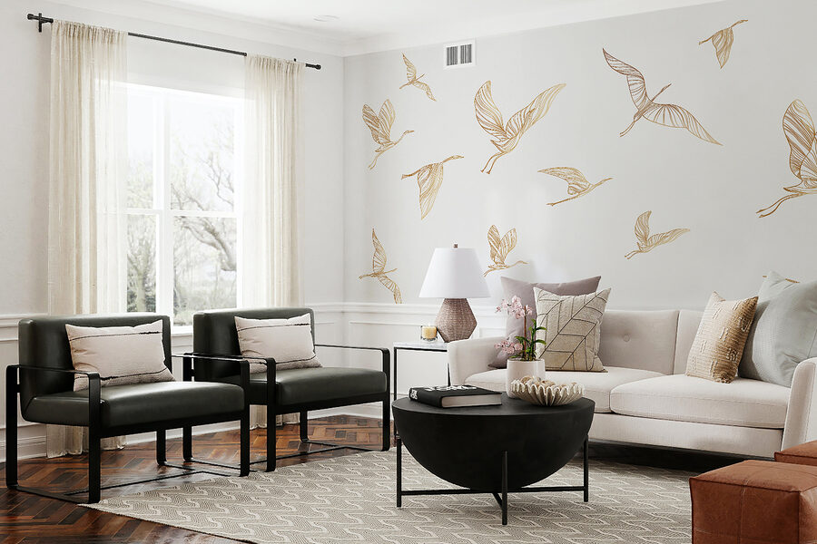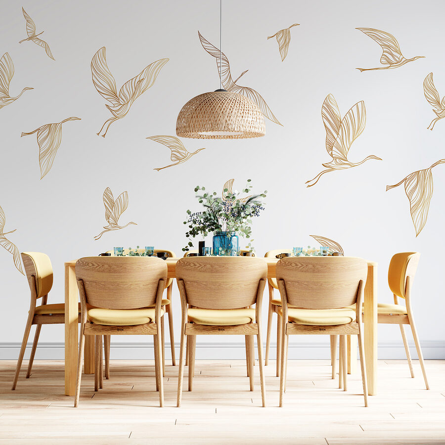 Μεταμορφώστε το χώρο σας με αυτή τη μαγευτική τοιχογραφία τοίχου με λεπτεπίλεπτα πουλιά σε πτήση. Είναι σαν μια ανάσα φρέσκου αέρα στον τοίχο σας! Φανταστείτε να ξυπνάτε κάθε πρωί και να βλέπετε τις χαριτωμένες σιλουέτες να γλιστρούν από πάνω σας, ανεβάζοντας αμέσως τη διάθεσή σας. Οι απαλές, ρέουσες γραμμές δημιουργούν έναν χορό στο δωμάτιο, κάνοντάς το να μοιάζει ζωντανό αλλά και γαλήνιο. Φανταστείτε μια ζεστή γωνιά για καφέ όπου, περιτριγυρισμένοι από την ομορφιά της φύσης, μπορείτε να πιείτε το ρόφημά σας – καθαρή ευτυχία, σωστά; Αυτή η τοιχογραφία προσθέτει μια πινελιά ιδιοτροπίας, ιδανική για όποιον αγαπά να νιώθει συνδεδεμένος με τη φύση, ακόμη και σε εσωτερικούς χώρους. Είναι κάτι περισσότερο από διακόσμηση- είναι ένα μικρό κομμάτι χαράς έτοιμο να φωτίσει τη μέρα σας!