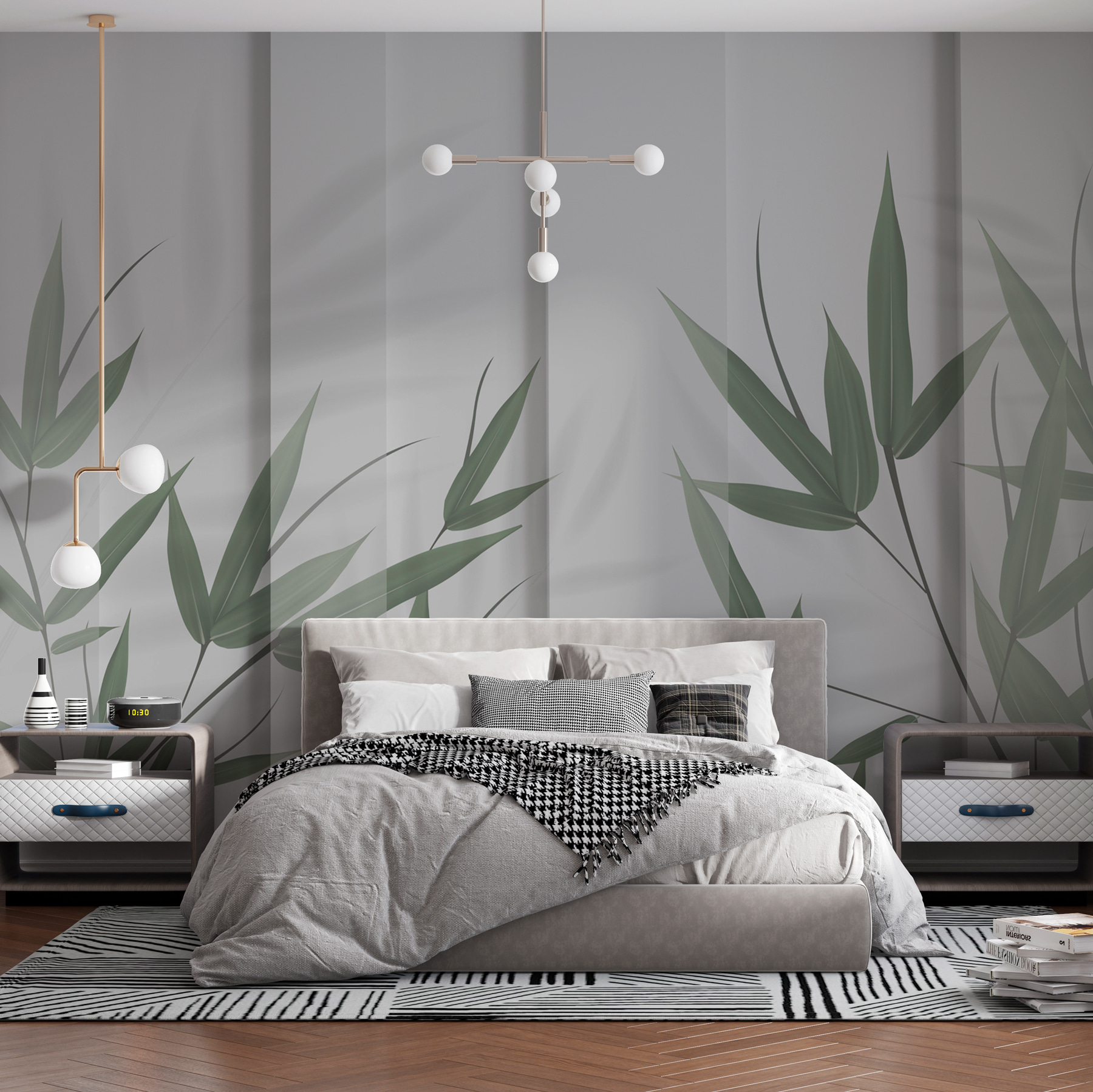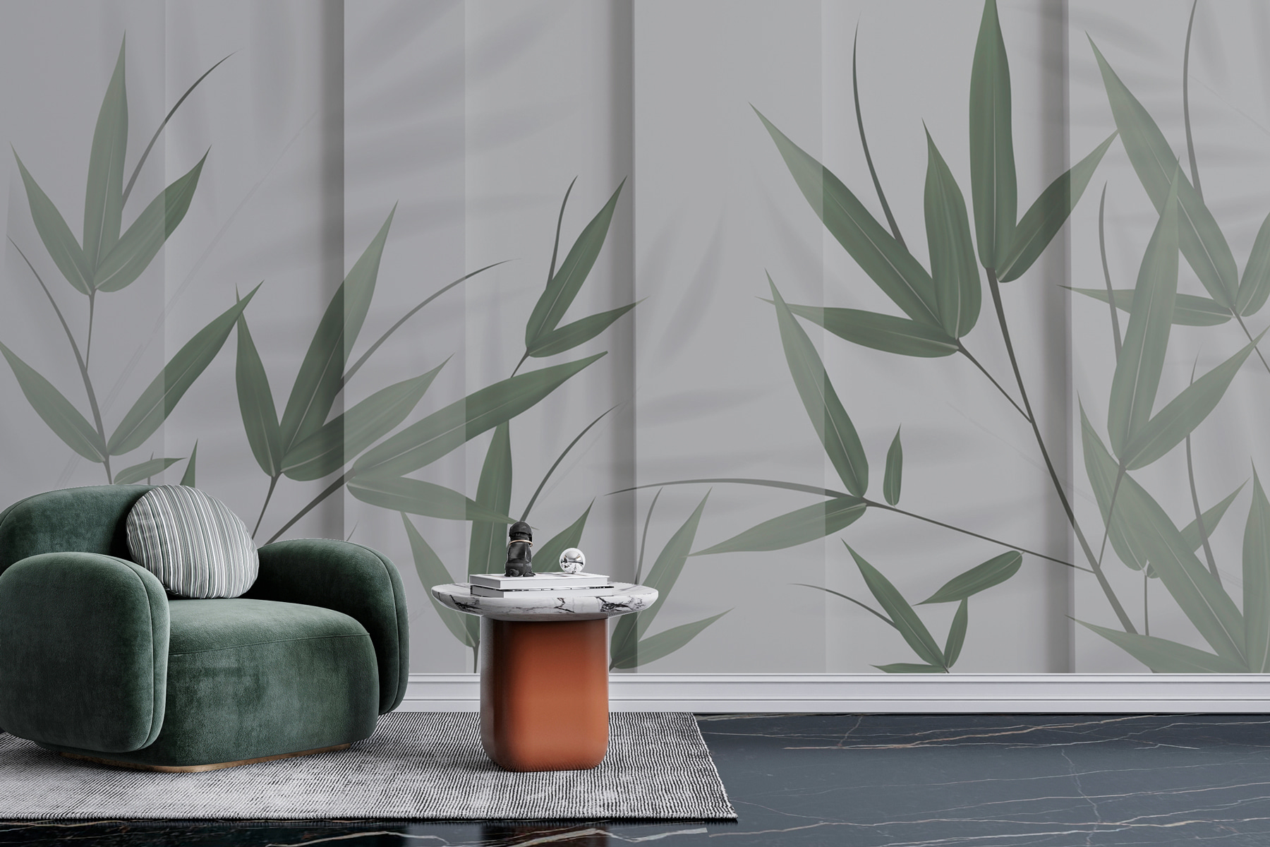 Μπείτε σε μια γαλήνια όαση με αυτή την πανέμορφη τοιχογραφία “Πράσινα φύλλα και σκιές”. Φανταστείτε πλούσια φύλλα μπαμπού να ρίχνουν απαλά σκιές πάνω σε μαλακό ύφασμα – είναι σαν να έχετε έναν γαλήνιο κήπο μέσα στο δωμάτιό σας. Αυτή δεν είναι απλώς μια τοιχογραφία, είναι ένα κομμάτι ηρεμίας. Ιδανική για μια γωνιά ζεν, ένα υπνοδωμάτιο ή οπουδήποτε χρειάζεστε λίγη πράσινη θεραπεία. Ο σύγχρονος σχεδιασμός ταιριάζει άψογα σε κάθε διακόσμηση, ενώ το τρισδιάστατο εφέ προσθέτει ακριβώς τη σωστή πινελιά βάθους. Θα νιώσετε σχεδόν ένα ελαφρύ αεράκι να θροΐζει αυτά τα φύλλα. Αναπνεύστε με ηρεμία – ο χώρος σας μόλις έγινε πολύ πιο γαλήνιος!