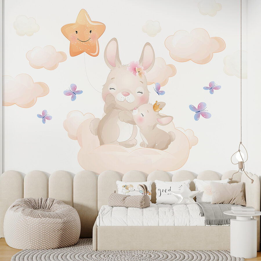 Φανταστείτε να μπαίνετε σε ένα δωμάτιο όπου ευφάνταστα λαγουδάκια, ονειρικά σύννεφα και ένα χαρούμενο αστέρι σας υποδέχονται με ένα ευγενικό χαμόγελο – καθαρή μαγεία, σωστά; Αυτή η τοιχογραφία τοίχου, “Cartoon of a Star”, φέρνει μια πρέζα αστερόσκονης και ένα σωρό γοητεία σε κάθε χώρο. Τα παστέλ σύννεφα φαίνονται σχεδόν αρκετά αφράτα για να τα αγγίξεις, και αυτές οι πεταλούδες; Απλά πετούν για να πουν ένα γεια. Είναι σαν να μπαίνετε σε ένα παραμύθι, ιδανικό για παιδικά δωμάτια ή παιδότοπους όπου η φαντασία ανθίζει. Τα απαλά χρώματα και οι απολαυστικοί χαρακτήρες το κάνουν να μοιάζει με μια απαλή αγκαλιά για τους τοίχους. Ιδανικό για να πυροδοτήσετε παραμύθια πριν τον ύπνο ή απλά για να προσθέσετε μια δόση θαύματος στην καθημερινότητά σας.