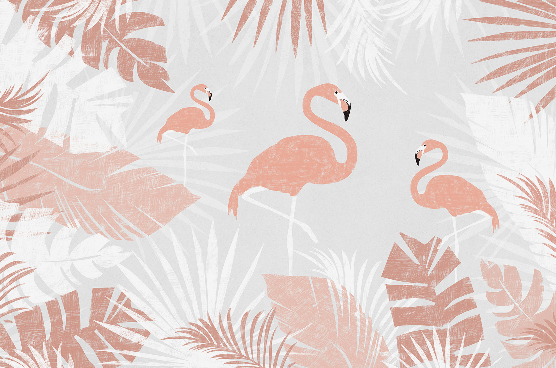 Αυτή η τοιχογραφία αποτυπώνει την ιδιόρρυθμη ουσία των φλαμίνγκο σε ισορροπία με τη γαλήνια ομορφιά της φύσης. Δεν χρειάζεται να ετοιμάσετε τις βαλίτσες σας για μια απόδραση στο νησί- αυτή η ζωντανή και κομψή τοιχογραφία φέρνει τον παράδεισο σε εσάς. Οι ζεστές αποχρώσεις του ροζ και του πράσινου μπορούν να μετατρέψουν κάθε βαρετό χώρο σε ένα ζωντανό τροπικό καταφύγιο.