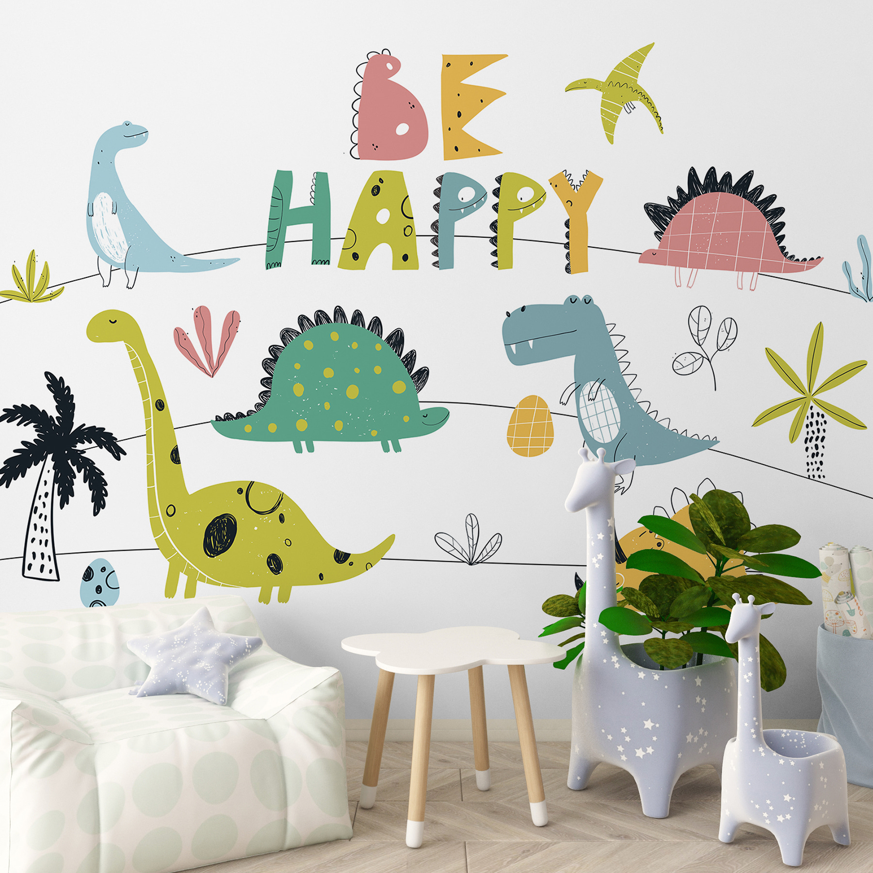 Αυτή η απολαυστική τοιχογραφία, με τον ιδιόρρυθμο τίτλο “Cartoon Dinosaur Holding an Egg”, είναι ένα must για όσους θέλουν να προσθέσουν μια πινελιά χαράς στο δωμάτιο ενός παιδιού ή σε έναν παιχνιδιάρικο χώρο. Φανταστείτε ένα κοπάδι χαρούμενων δεινοσαύρων, όλοι ντυμένοι σε παστέλ αποχρώσεις, με ένα πλάσμα να κρατάει περήφανα ένα αυγό. Είναι σαν να μπαίνετε σε ένα καρτούν του Σαββάτου! Τα παιδιά θα λατρέψουν τη ζωντανή σκηνή, γεμάτη με φιλικούς δεινόσαυρους και ένα συγκινητικό μήνυμα “Be Happy”. Είναι διασκεδαστικό, είναι ζωντανό και φέρνει λίγο προϊστορικό κέφι στο αγαπημένο σας δωμάτιο. Ιδανικό για να κεντρίσετε τη φαντασία των μικρών ή απλά να κάνετε έναν χώρο να αισθάνεται ιδιαίτερα άνετος και ιδιόρρυθμος.