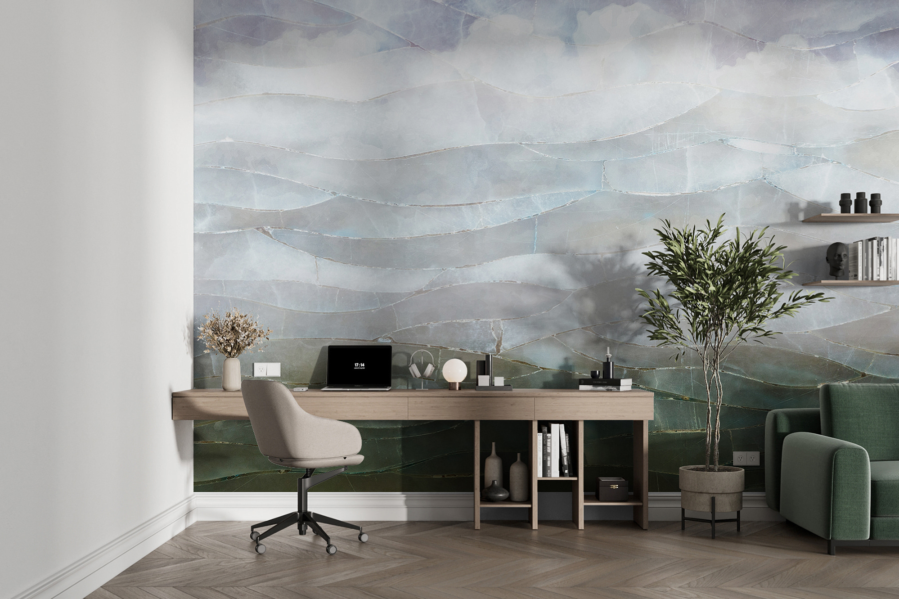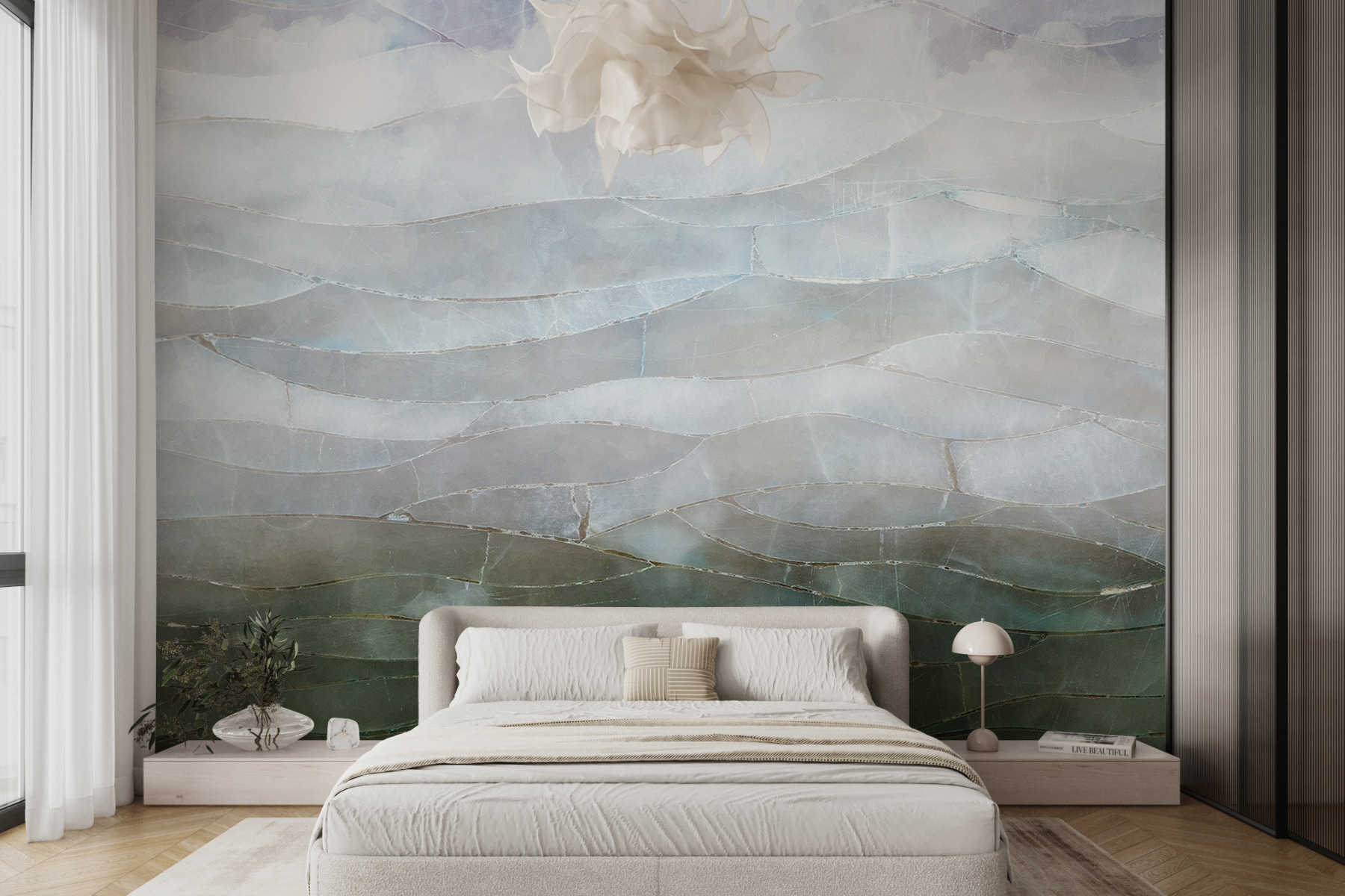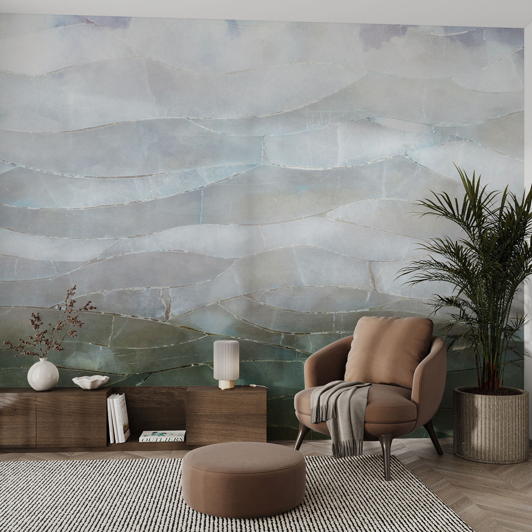 Φανταστείτε το εξής: επιστρέφετε στο σπίτι μετά από μια κουραστική μέρα, πέφτετε στον καναπέ και κοιτάζετε τον τοίχο σας – μεταφέρεστε αμέσως σε ένα μέρος όπου ο ουρανός συναντά τη θάλασσα, με ένα απρόσκοπτο μείγμα χρωμάτων και υφών. Τα κυματιστά μοτίβα έχουν αυτό το φοβερό τρισδιάστατο εφέ, κάνοντας τον τοίχο να μοιάζει σχεδόν ζωντανός. Πολύ ωραίο, έτσι δεν είναι; Είναι ιδανικό για ένα σαλόνι, ένα υπνοδωμάτιο ή ακόμη και για έναν δημιουργικό χώρο εργασίας.