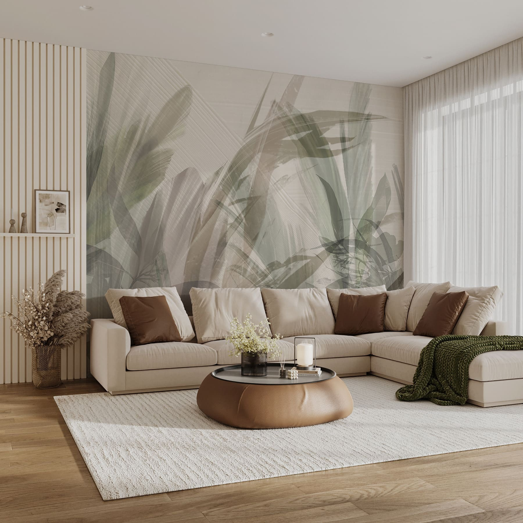 Ψάχνετε να φέρετε λίγη φύση στους εσωτερικούς χώρους; Δείτε αυτή την εκπληκτική τοιχογραφία με τίτλο “Abstract Nature: Leaf Impressions: Delicate Leaf Impressions”. Φανταστείτε αυτό το απαλό μείγμα φύλλων ακουαρέλας να μεταμορφώνει το χώρο σας σε ένα άνετο, γαλήνιο καταφύγιο. Εννοώ, είναι σαν δάσος, αλλά χωρίς τα έντομα! Οι λεπτές αποχρώσεις και τα φυλλώδη μοτίβα δημιουργούν μια ψιθυριστή ηρεμία που θα κάνει το σαλόνι, το υπνοδωμάτιο ή ακόμα και το γραφείο σας να μοιάζει με ένα γαλήνιο καταφύγιο. Ιδανικό για όποιον αγαπά την ομορφιά των φυλλωμάτων αλλά δεν θέλει να ασχολείται με το πότισμα των φυτών (δεν υπάρχει κριτική εδώ!). Αυτή η τοιχογραφία ταιριάζει σε τόσα πολλά στυλ, από μοντέρνο έως boho, και προσθέτει μια βουτιά φύσης χωρίς να κατακλύζει το δωμάτιο. Επιπλέον, είναι ένας πολύ καλός λόγος για συζήτηση – “Αυτή είναι μια φτέρη ή ένας φοίνικας;”. Οι καλεσμένοι σας θα αναρωτιούνται. Το να το προσθέσετε στη διακόσμησή σας είναι σαν να δίνετε στους τοίχους σας μια απαλή αγκαλιά.