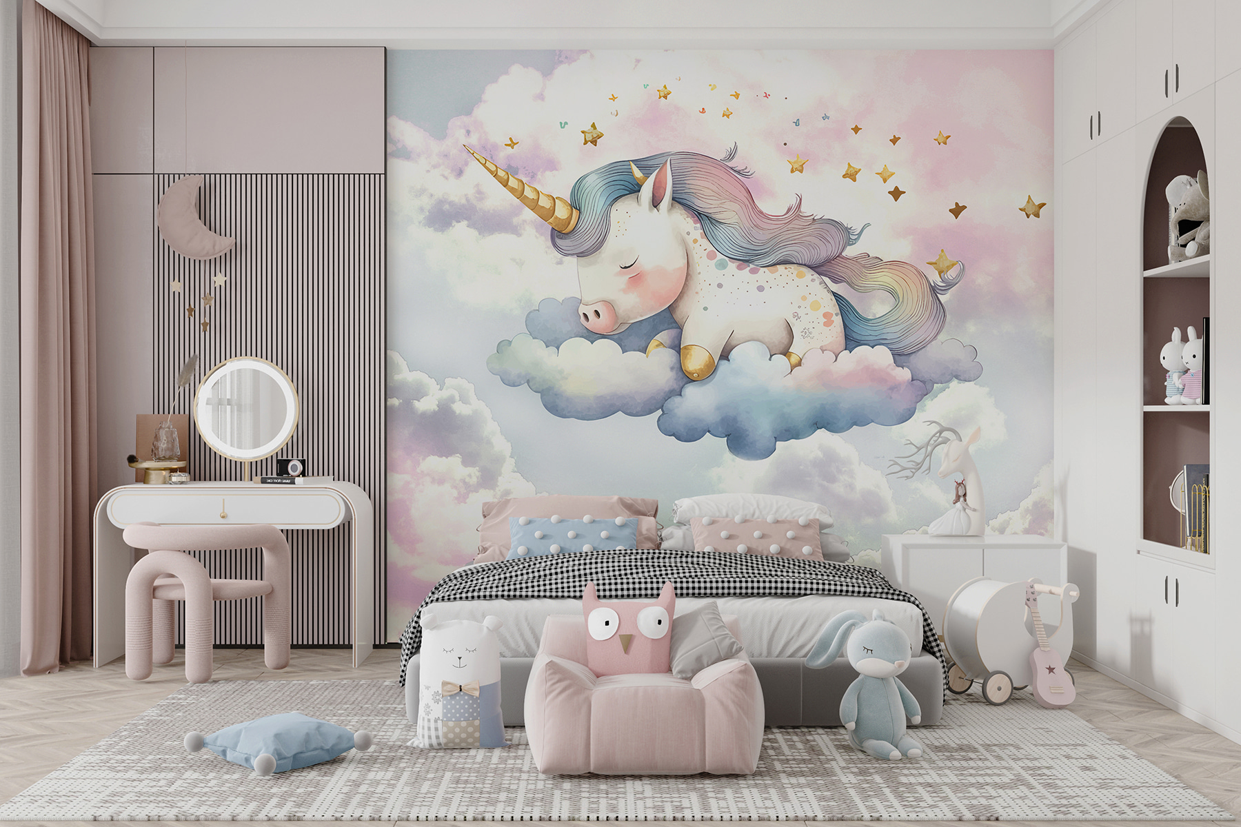 Δείτε αυτή την ονειρική τοιχογραφία “Unicorn Sleeping on Clouds”! Σοβαρά, είναι σαν να μπαίνεις σε ένα χνουδωτό, μαγικό όνειρο κάθε φορά που μπαίνεις στο δωμάτιο. Φανταστείτε το αγαπημένο σας φιλόξενο σημείο να διαθέτει τώρα έναν σούπερ χαριτωμένο, κοιμισμένο μονόκερο που φωλιάζει πάνω σε μαλακά, φουσκωτά σύννεφα – τι ατμόσφαιρα, έτσι δεν είναι; Ιδανικό για να προσθέσετε μια δόση μαγείας στο παιδικό δωμάτιο ή ακόμα και στη δική σας μικρή γωνιά ανάγνωσης.