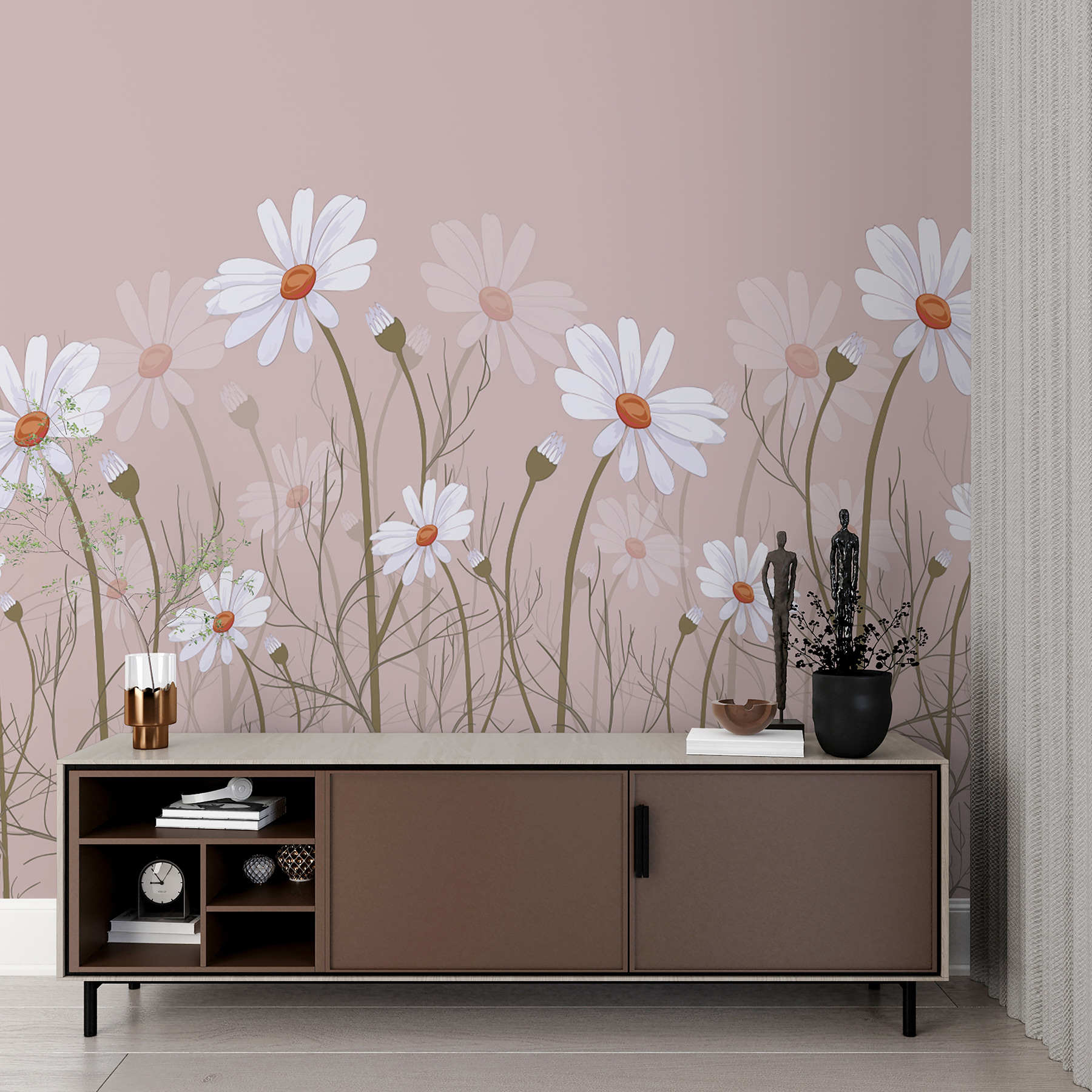 Αναβαθμίστε το χώρο σας με τη μαγευτική τοιχογραφία “Λευκές μαργαρίτες σε φόντο χαμηλού φωτισμού”. Ιδανική για όσους αγαπούν ένα μείγμα τέχνης και φύσης. Φανταστείτε να ξυπνάτε και να βλέπετε ένα χωράφι από ντελικάτες, λευκές μαργαρίτες να χορεύουν στον τοίχο σας, σε ένα απαλό και διακριτικό φόντο. Είναι σαν να φέρνετε ένα λιβάδι μέσα στο σπίτι, χωρίς τη γύρη! Αυτή η τοιχογραφία από τη συλλογή μας Contemporary Flowers είναι ιδανική για να προσθέσετε μια πινελιά γοητείας σε κάθε δωμάτιο. Είναι χαρούμενη αλλά και ηρεμιστική – ένα μικρό κομμάτι της δύναμης των λουλουδιών που σίγουρα θα σας ανεβάσει τη διάθεση και θα σας φτιάξει τη μέρα. Ιδανική για υπνοδωμάτια, σαλόνια ή ακόμα και για μια γωνιά ανάγνωσης. Άνετο και όμορφο, είναι βέβαιο ότι θα γίνει αφορμή για συζήτηση ή σημείο για ονειροπόληση. Αβίαστα κομψή, αυτή η τοιχογραφία θα κάνει τους τοίχους σας να ανθίσουν από χαρά.