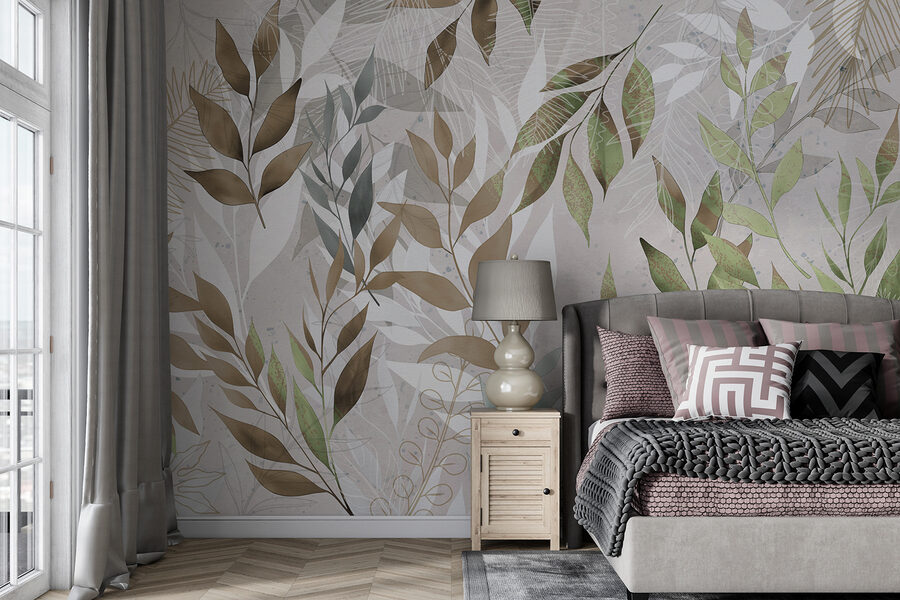 Τα χρώματα είναι απαλά αλλά ζωηρά πράσινα και καφέ χρώματα, που αναμειγνύονται τέλεια για να δώσουν αυτό το αβίαστα δροσερό βλέμμα. Κάθε φορά που το κοιτάζετε, μπορεί να νιώθετε λίγο πιο χαλαροί, σαν να κάνετε μίνι διακοπές. Ιδανικό για όσους αγαπούν την ομορφιά της φύσης αλλά δεν μπορούν να βρίσκονται πάντα έξω. Αυτή η τοιχογραφία δεν διακοσμεί απλώς, δημιουργεί μια εμπειρία – φανταστείτε άνετα πρωινά με καφέ ή βράδια με απαλή μουσική, περιτριγυρισμένα από αυτό το υπέροχο έργο τέχνης με τα φύλλα. Ιδανικό για όνειρα.