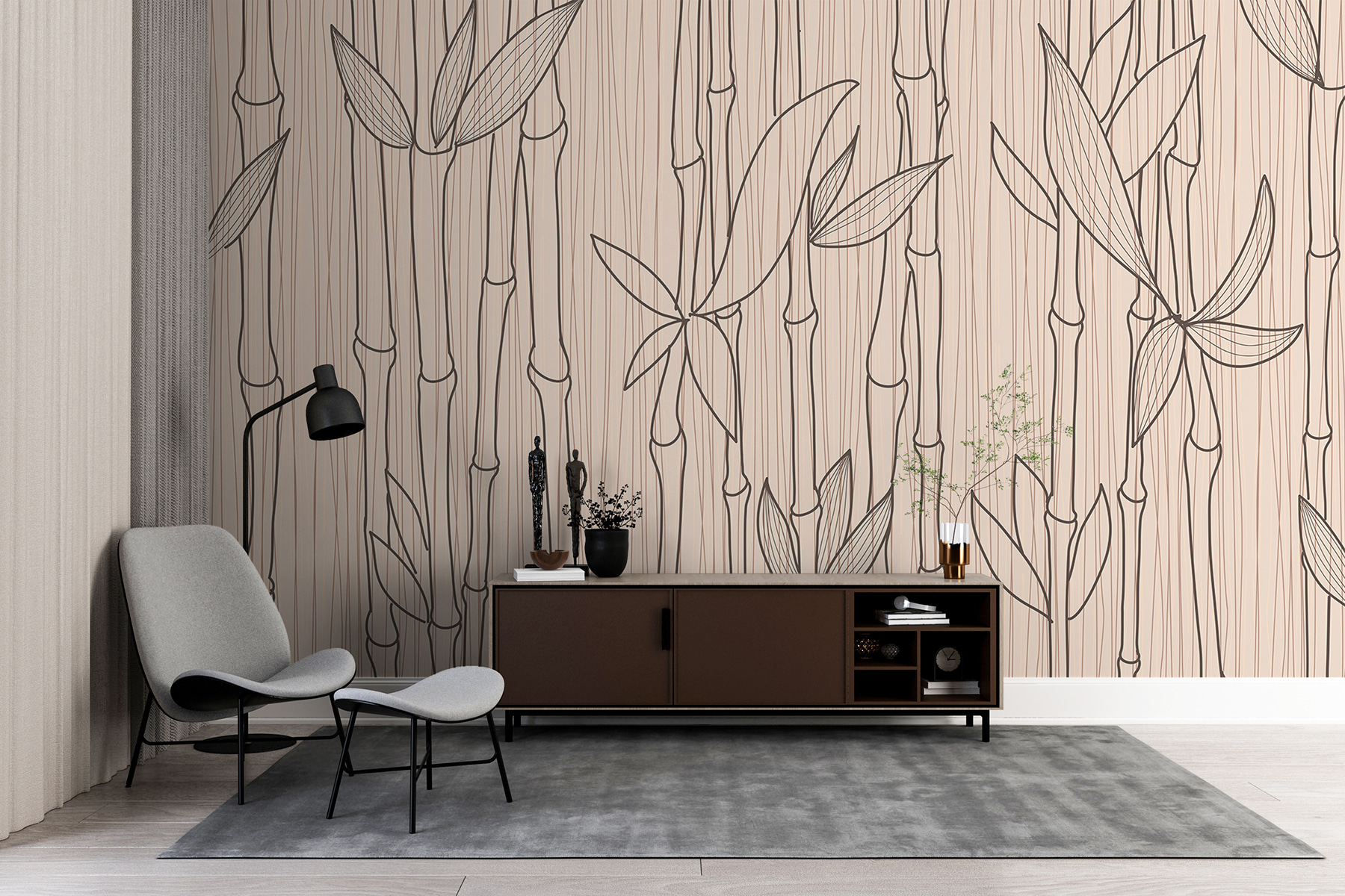 Ταπετσαρίες Σχέδιο σκίτσου μπαμπού σε μπεζ φόντο. (Κωδικός προϊόντος: w00875v2)
