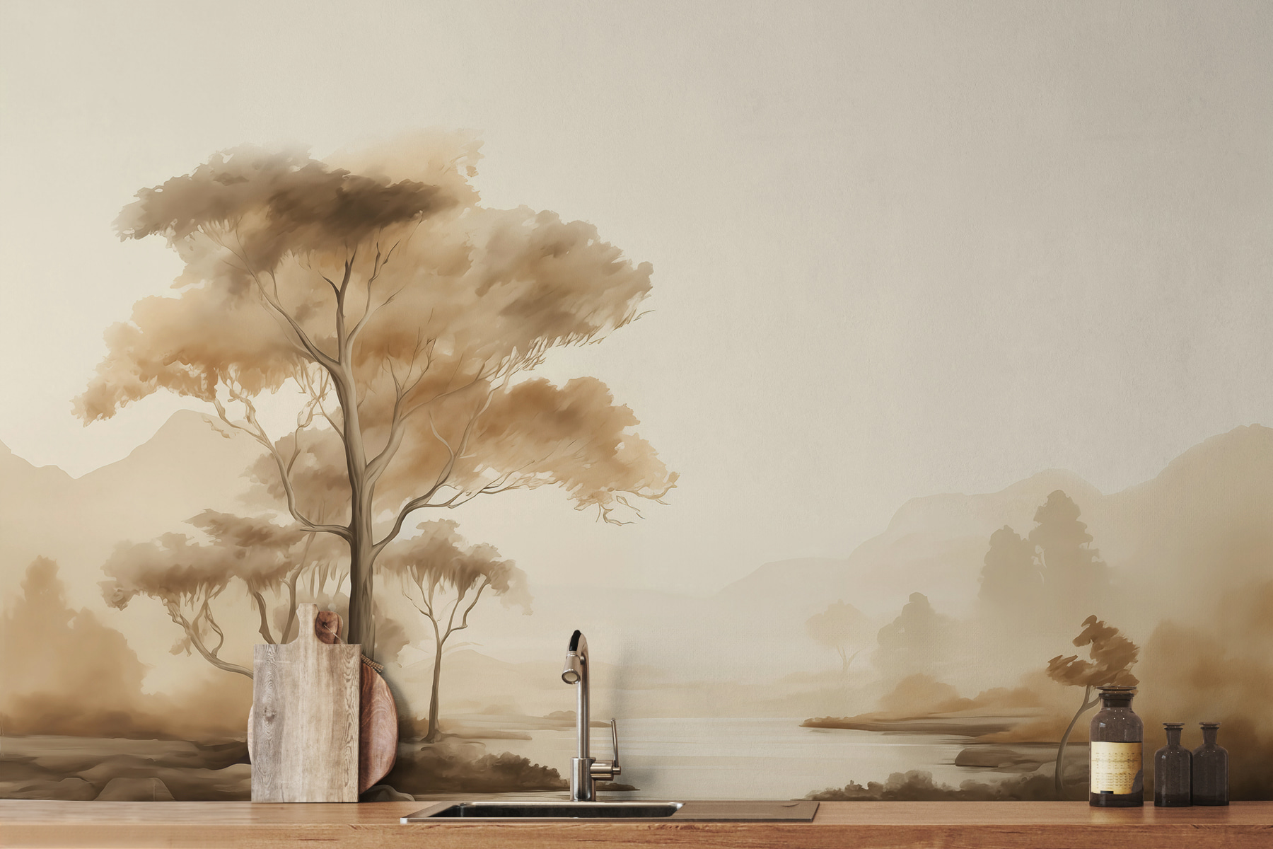 Οι απαλές, γήινες αποχρώσεις μοιάζουν με μια ζεστή αγκαλιά. Ιδανικό για όποιον χρειάζεται μια μικρή απόδραση από την καθημερινότητα. Υπάρχει κάτι διαχρονικό στον τρόπο με τον οποίο τα δέντρα δένουν με τον ουρανό – σχεδόν σαν ένα παλιό παραμύθι που θα ακούγατε από τους παππούδες σας. Πιστέψτε με, είναι τόσο καταπραϋντικό όσο ακούγεται. Είτε είστε λάτρης της φύσης, είτε ονειροπόλος, είτε κάποιος που ψάχνει για ένα ποπ ηρεμίας, αυτή η τοιχογραφία σας καλύπτει. Τι θα λέγατε λοιπόν να φέρετε ένα κομμάτι της ειρηνικής άγριας φύσης στους εσωτερικούς χώρους; Είναι σαν μια στιγμιαία απόδραση… χωρίς να πακετάρετε μια βαλίτσα!