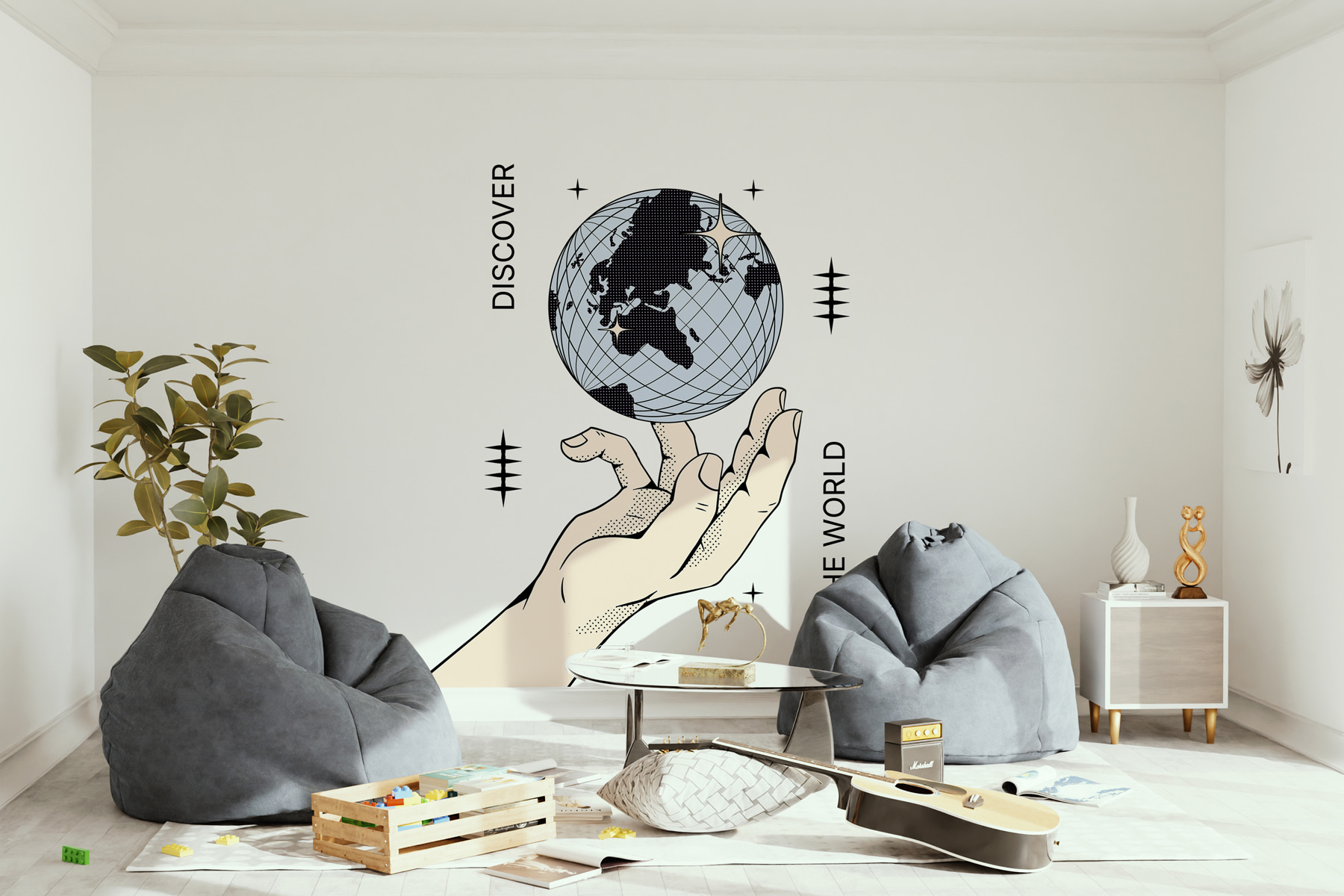 Φανταστείτε το στον τοίχο σας… κάθε φορά που το κοιτάζετε, σας πιάνει το αίσθημα της περιπλάνησης. Είναι σαν μια μίνι απόδραση, ακριβώς στο σαλόνι σας! Ο σχεδιασμός είναι τόσο κομψός και στιλάτος, με ένα χέρι που κρατά με χάρη τον κόσμο – μιλάμε για ένα statement piece!