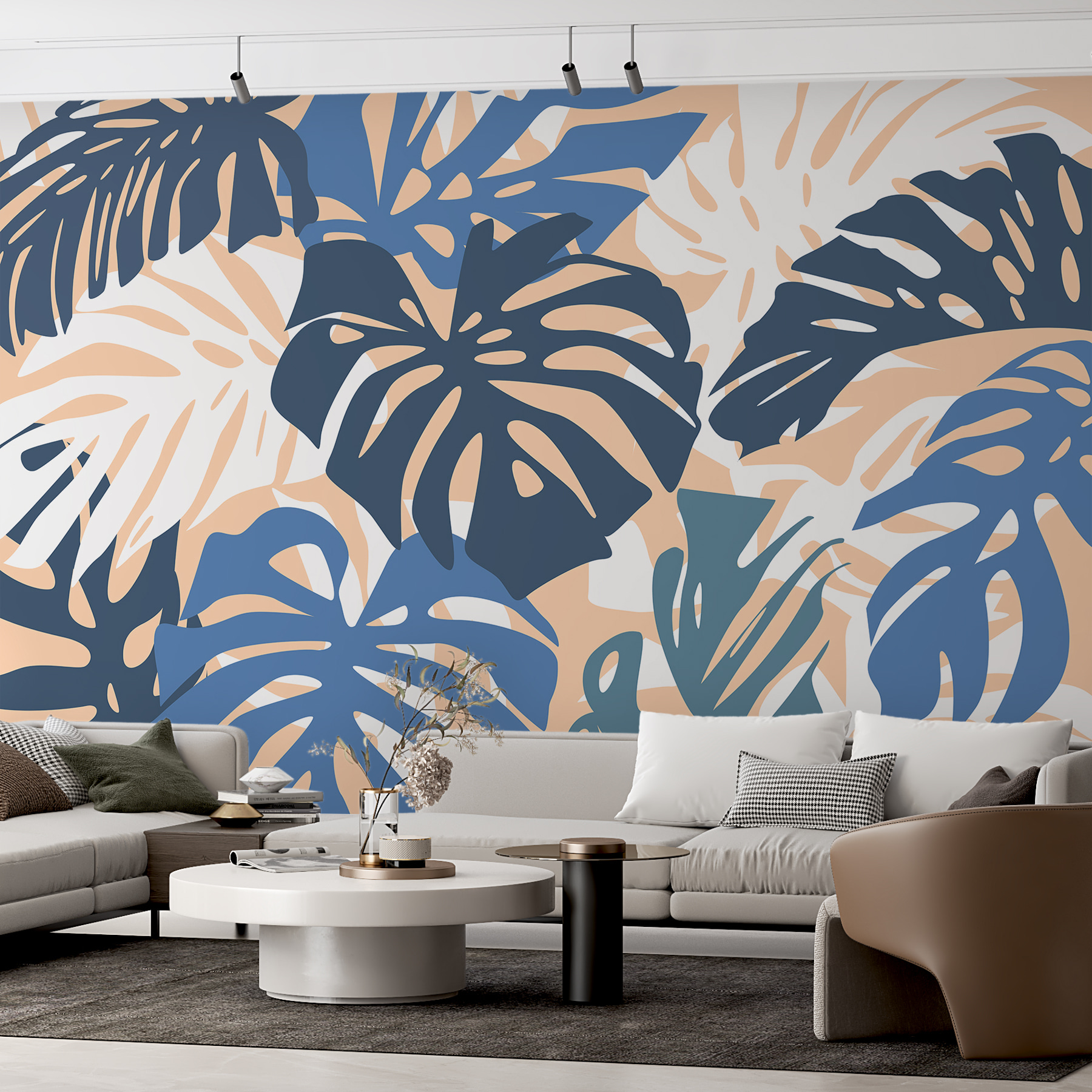 Μεταμορφώστε το χώρο σας με αυτή την εκπληκτική τοιχογραφία τοίχου με μπλε και λευκά φύλλα. Φανταστείτε να μπαίνετε σε μια τροπική απόδραση κάθε φορά που μπαίνετε στο δωμάτιο. Τα πλούσια φύλλα χορεύουν παιχνιδιάρικα σε ένα απαλό φόντο, δημιουργώντας μια ζωντανή αλλά και ήρεμη ατμόσφαιρα. Είναι ιδανική για να φωτίσει ένα καθιστικό ή να προσθέσει ατμόσφαιρα σε μια ζεστή γωνιά ανάγνωσης. Φανταστείτε να πίνετε τον πρωινό σας καφέ εδώ, περιτριγυρισμένοι από ονειρικά φυλλώματα. Για να μην αναφέρουμε ότι θα προκαλέσει συζητήσεις – οι επισκέπτες μπορεί ακόμη και να νομίζουν ότι βρίσκονται σε ένα παραθαλάσσιο καταφύγιο. Ένα άγγιγμα φύσης, μια πινελιά στυλ και πολλή γοητεία!